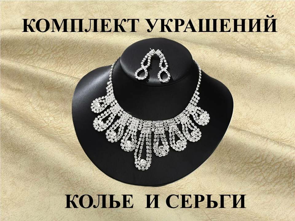 Купить Комплект бижутерии, размер кольца 13, размер браслета 46 см, размер колье/цепочки 46 см, бесцветный