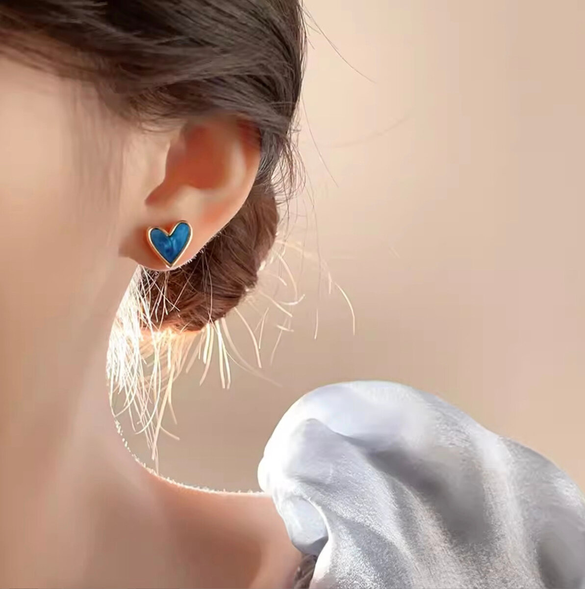 Пусеты 12 пар One year, сердцем к сердцу, цвет цветные в золоте