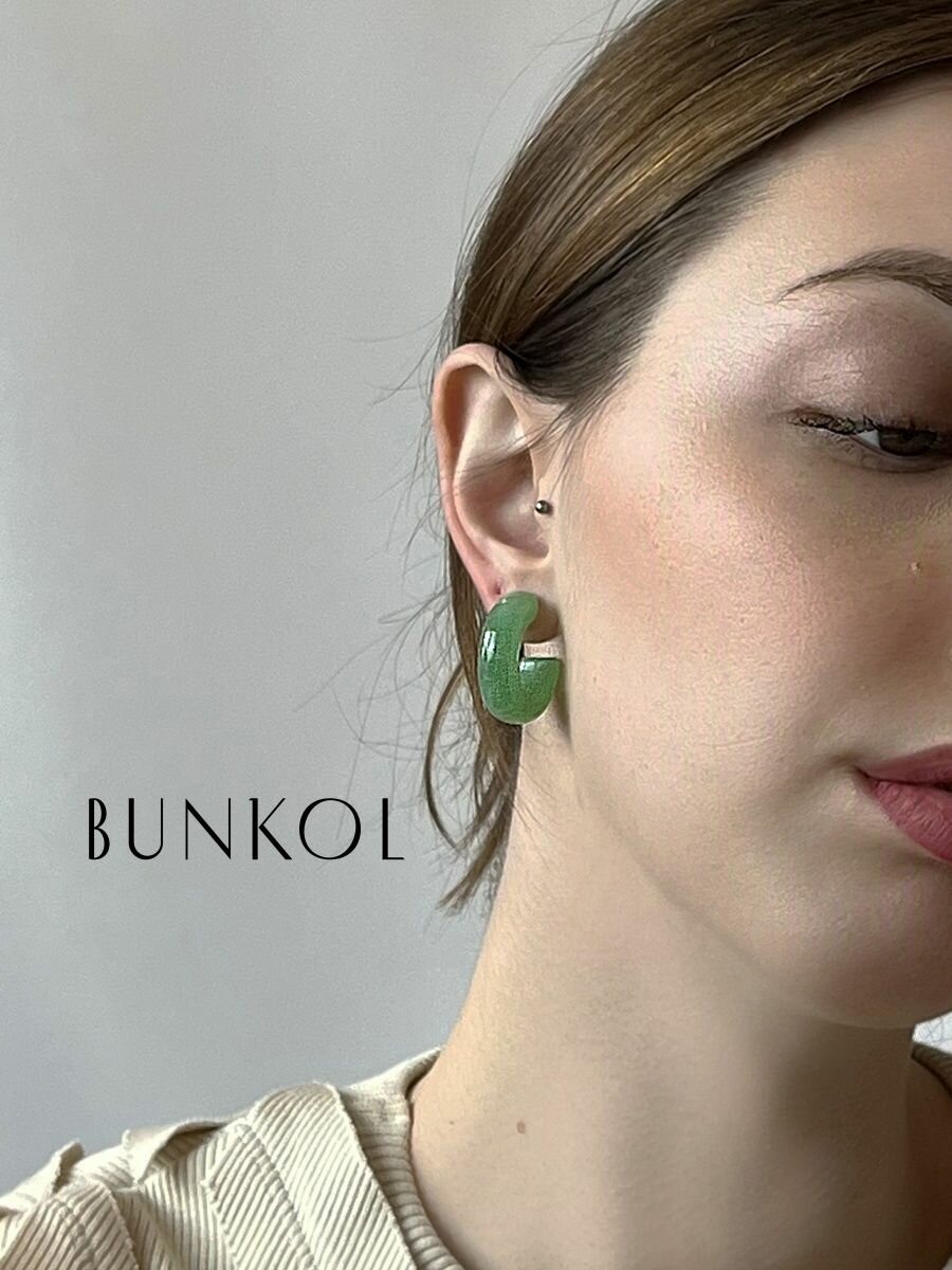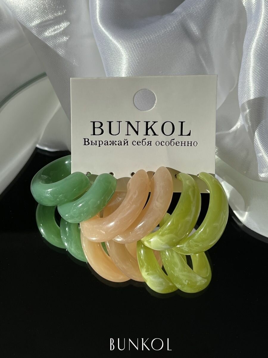 Комплект серег Bunkol, эмаль, пластик, размер 30 мм, зеленый
