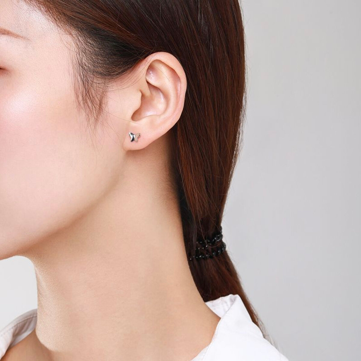 Серьги гвоздики "Бабочки" с искусственным камнем, цвет серебристый/белый
