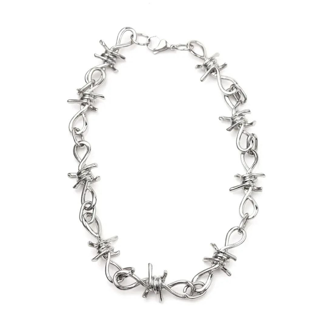 Цепочка на шею колючая проволока серебряная, мужская, женская, на карабине, унисекс украшение бижутерия