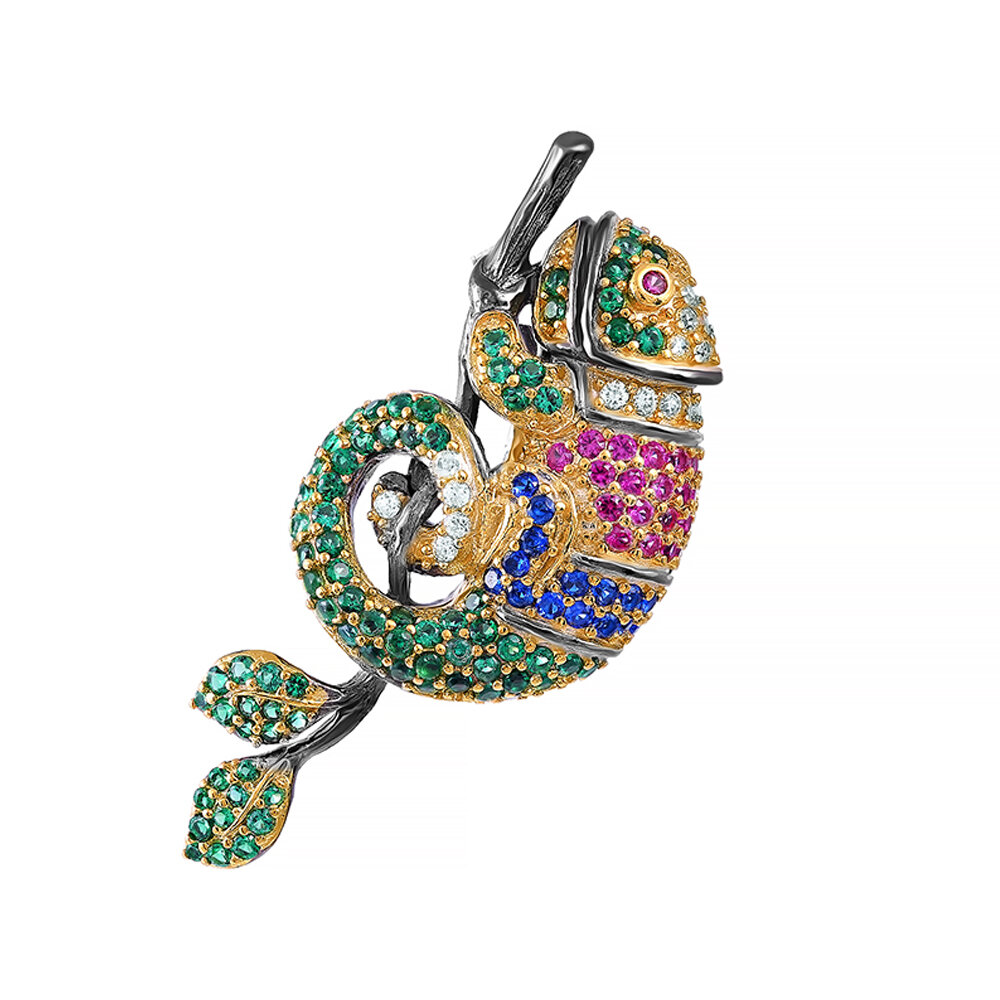 Брошь ELEMENT47, серебро, 925 проба, золочение, чернение, фианит, , мультиколор интересное: