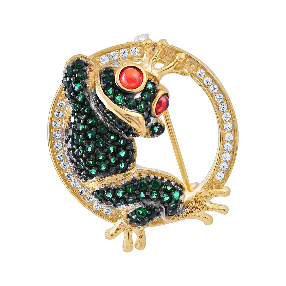 Брошь ELEMENT47, серебро, 925 проба, золочение, чернение, фианит, , золотистый, зеленый интересное: