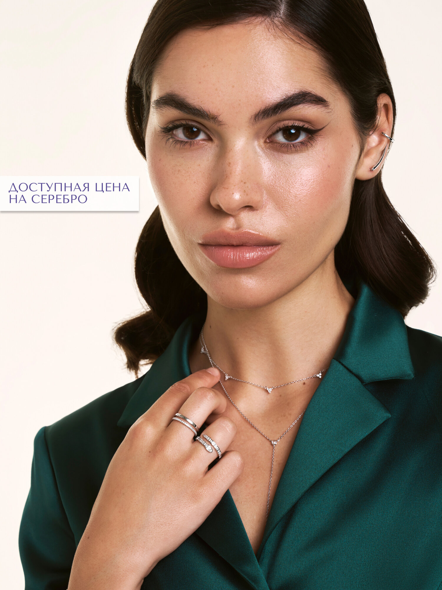 Колье MIESTILO подвеска серебряное с фианитами колье на шею цепочка с подвеской серебряная подвеска серебро 925 украшение с фианитами серебряная цепочка