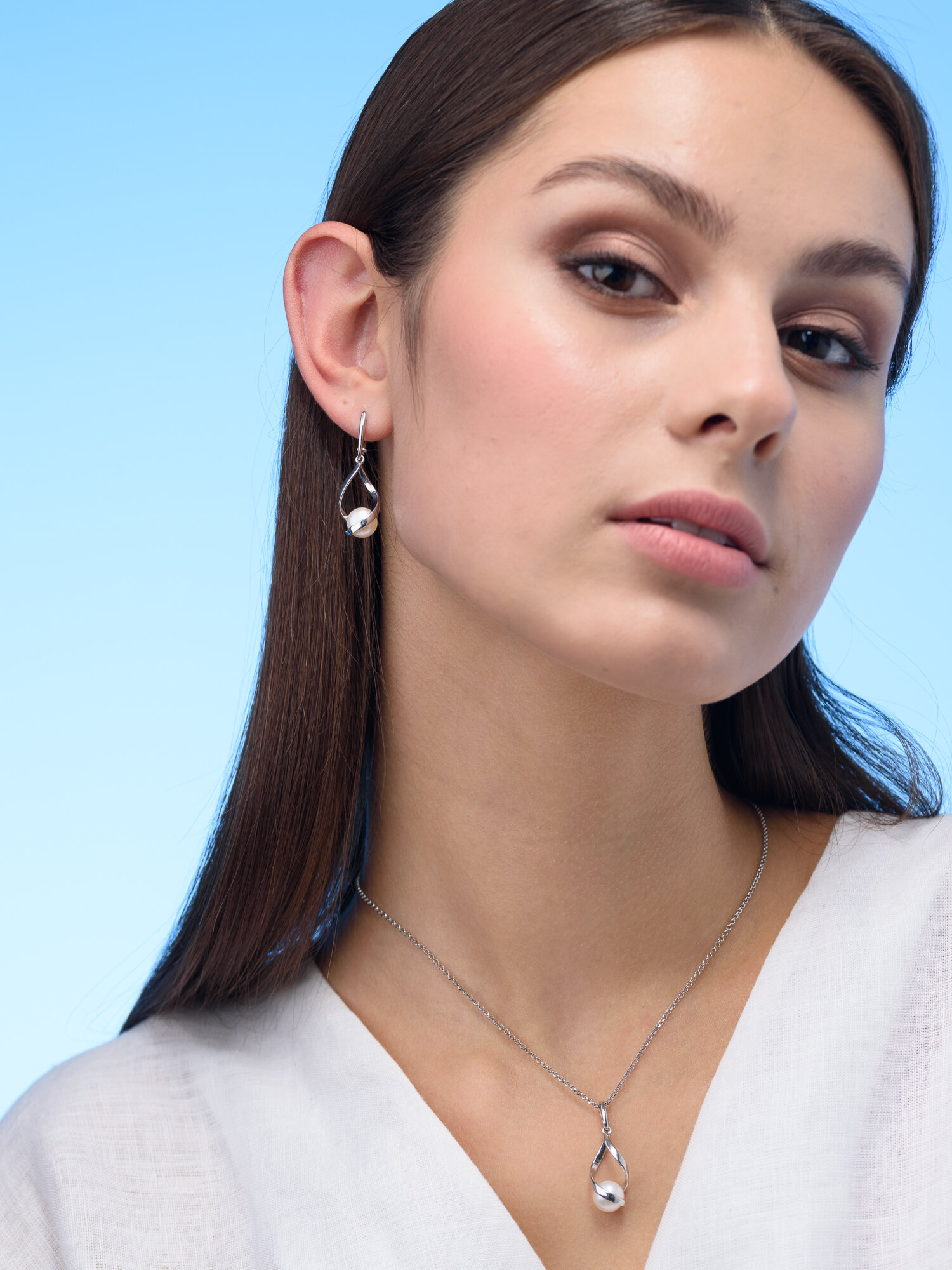 Подвеска с натуральным жемчугом "Спираль" серебро 925