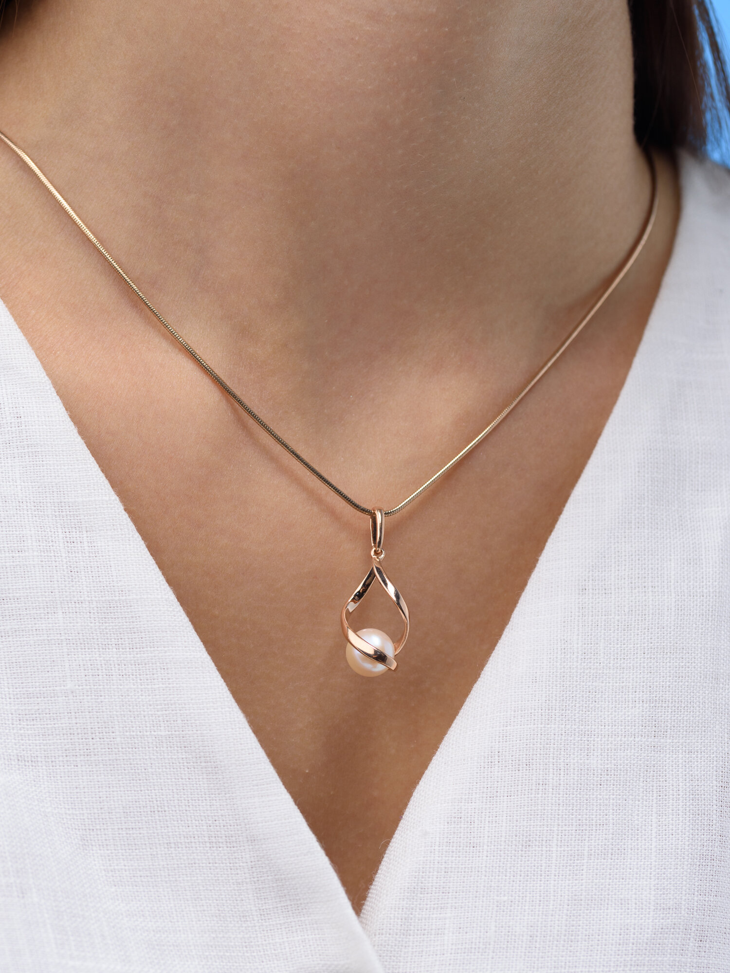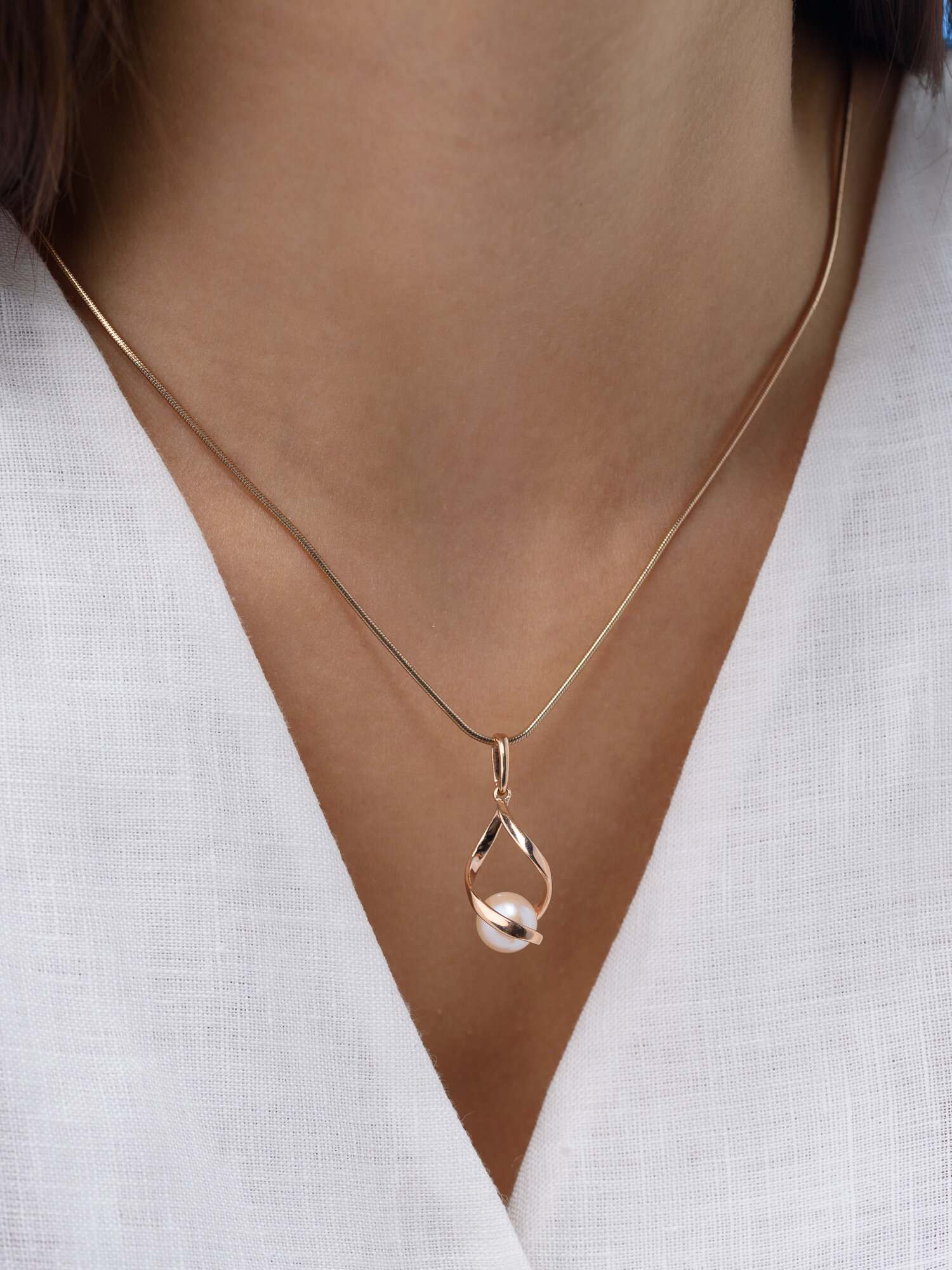 Подвеска с натуральным жемчугом "Спираль" серебро 925