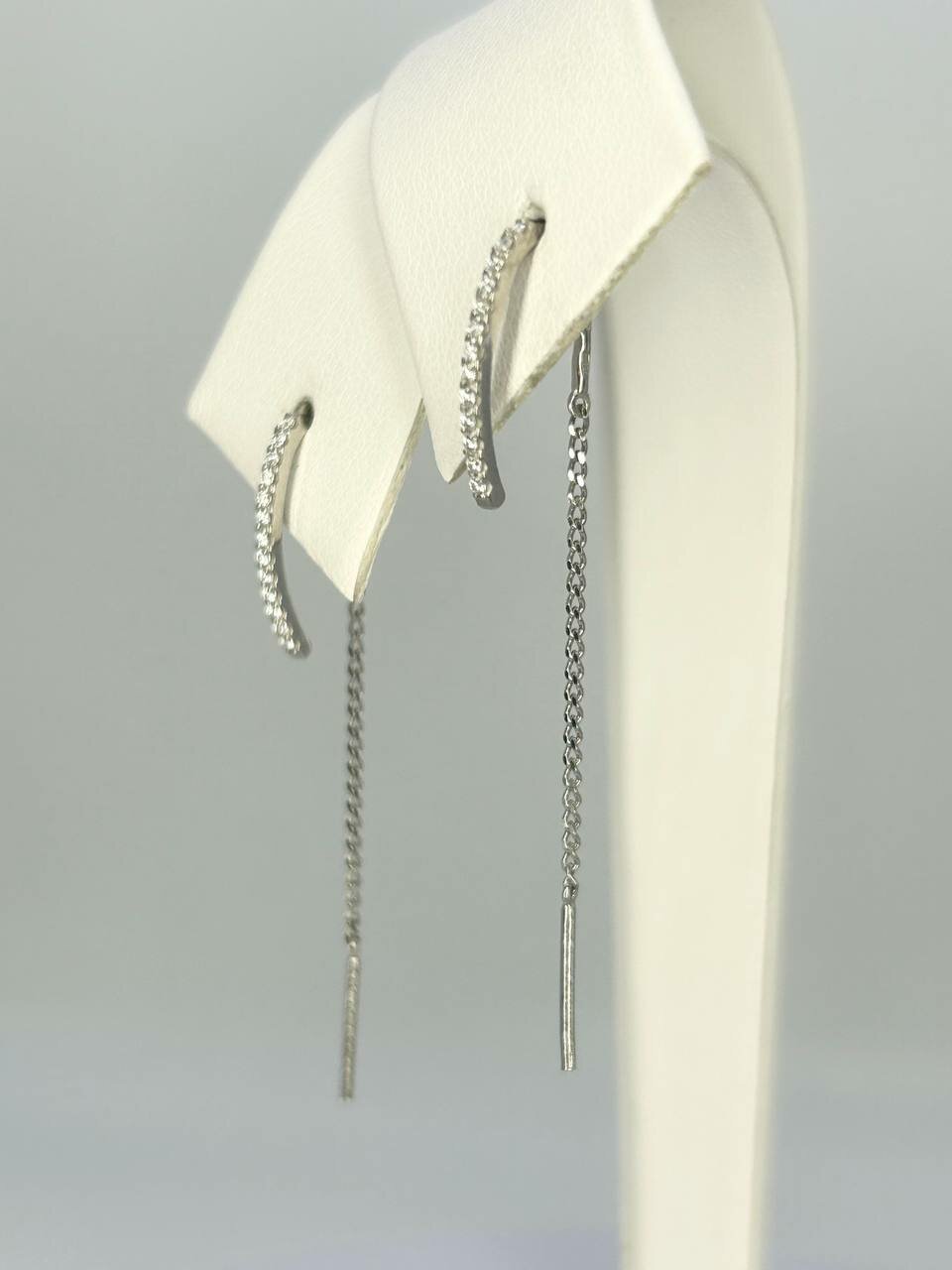 Серьги с фианитами "Протяжки" серебро 925 пробы Аргентум