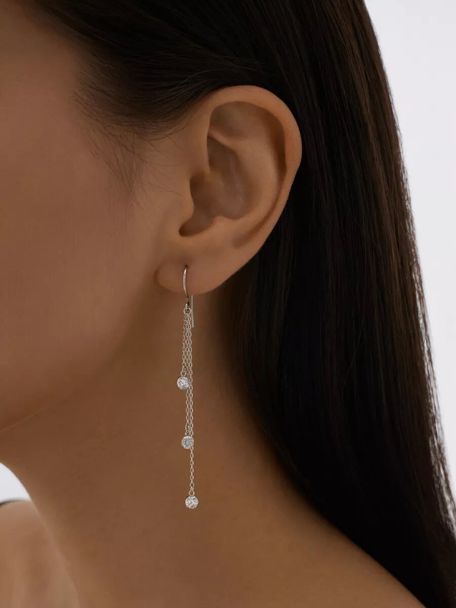 Серьги с подвесками, цепочки Ювелир Карат, серебро, 925 проба, родирование, фианит, размер 5 мм, длина 7.7 см, , серебряный интересное: