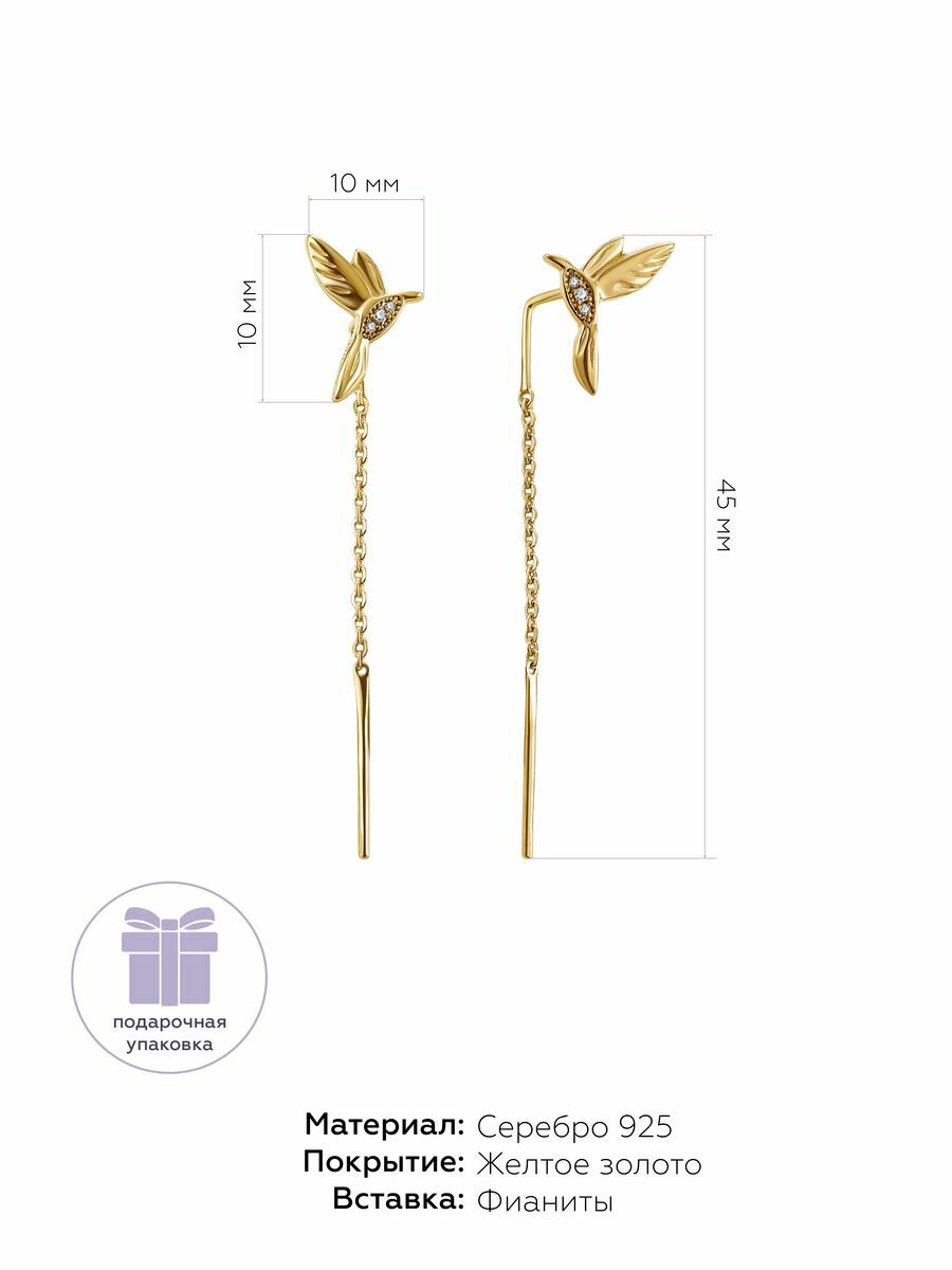 Серьги цепочки MIESTILO, серебро, 925 проба, золочение, фианит, , золотистый, желтый интересное: