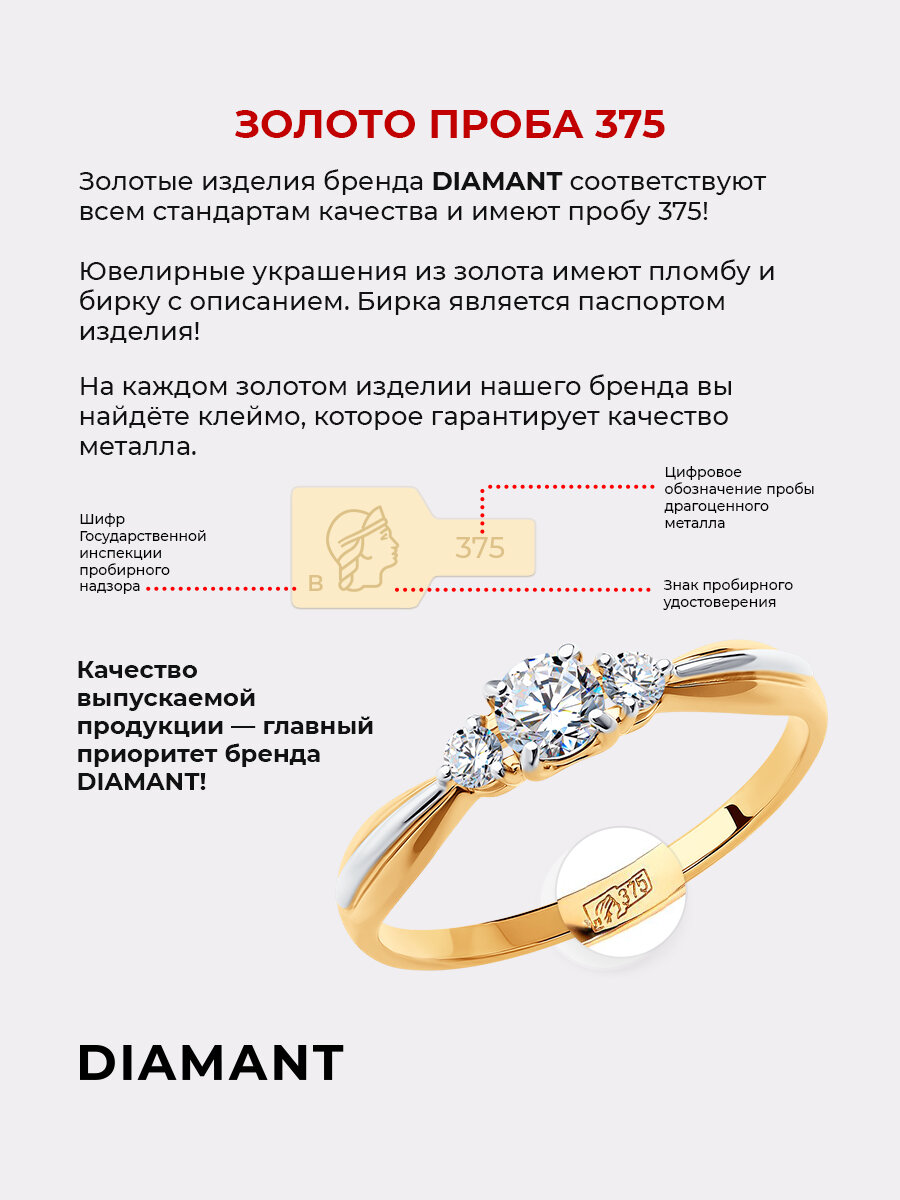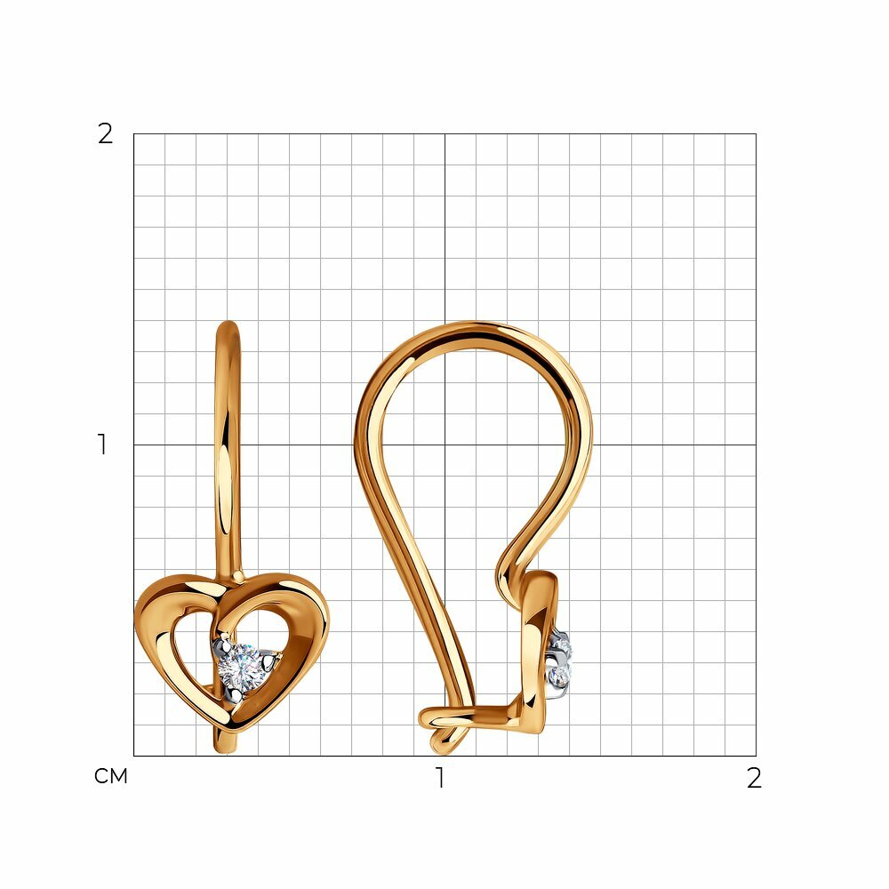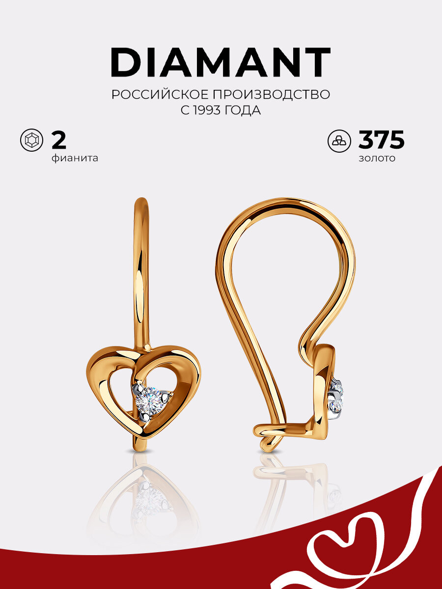 Серьги Diamant, красное золото, 375 проба, фианит, , бесцветный интересное: