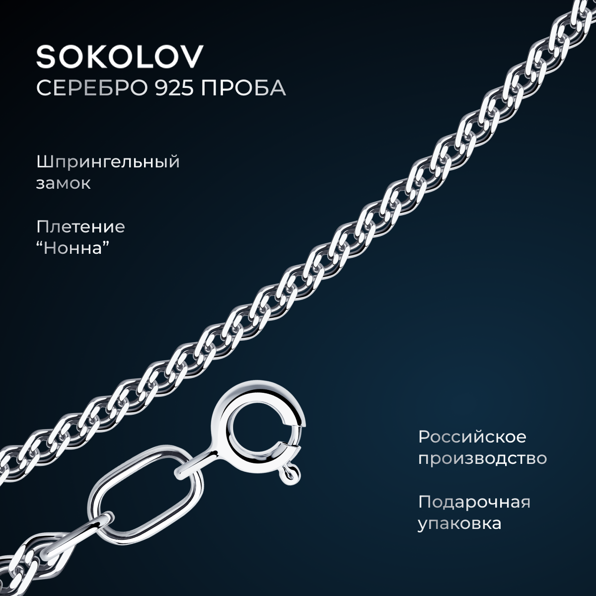 Цепь SOKOLOV из серебра, плетение Нонна, 925 проба 968060302, размер 55 см