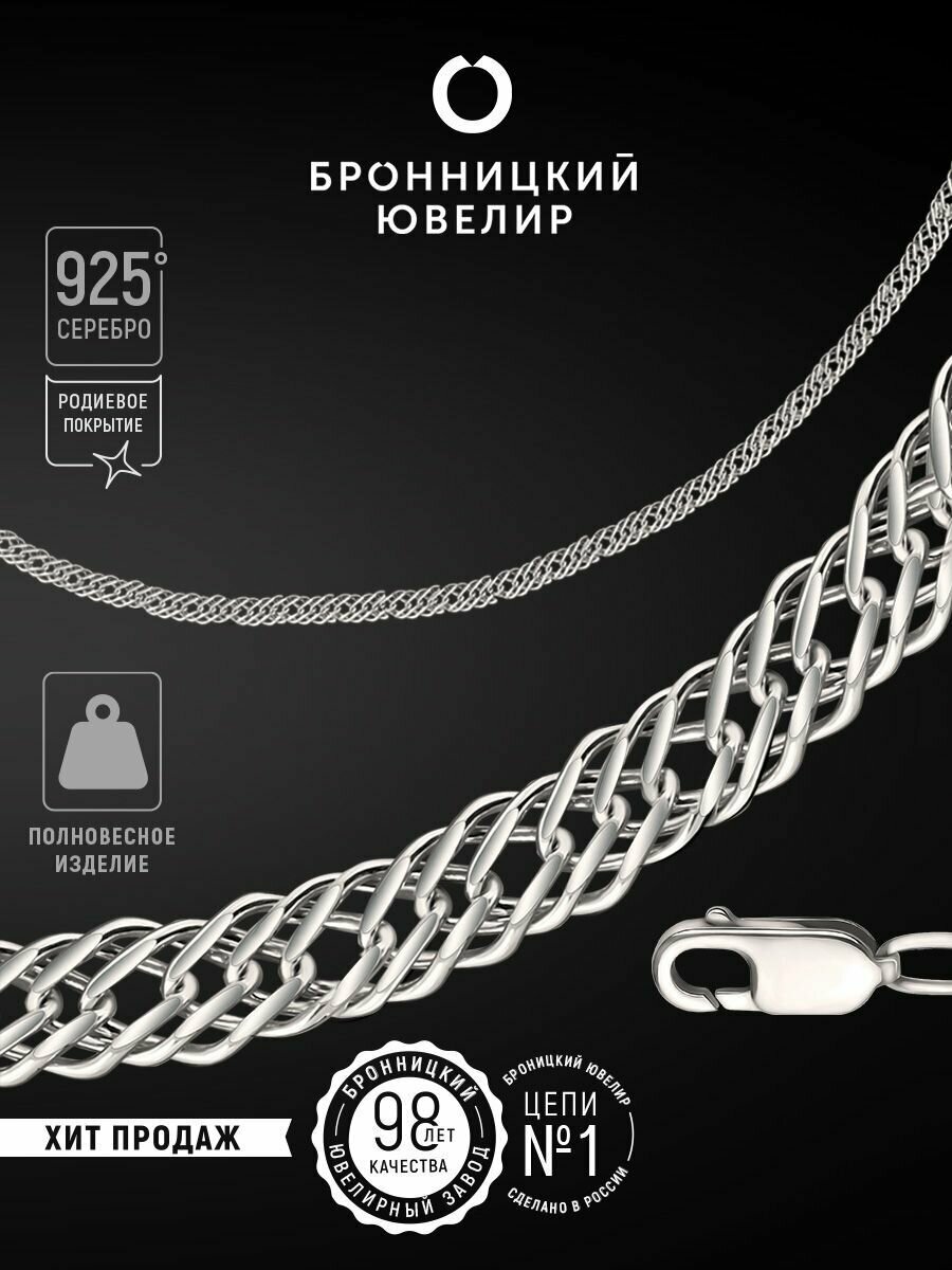 Купить Цепь Бронницкий Ювелир, серебро, 925 проба, родирование, длина 55 см, средний вес 8.25 г, , серебристый