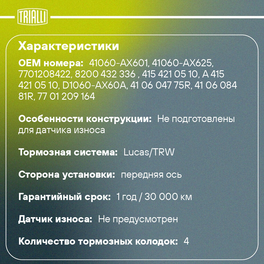 Колодки тормозные дисковые для автомобилей Лада Largus (12-) 16V / Vesta (15-) керамические передние PRO PF 1402CR TRIALLI интересное: