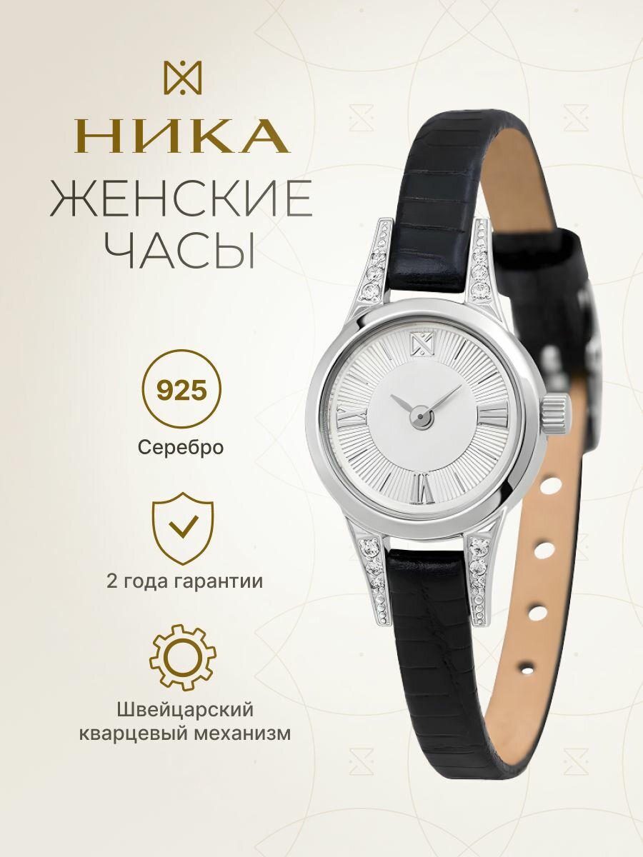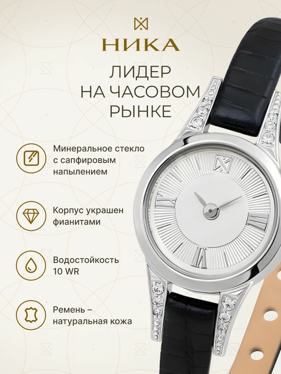 Наручные часы НИКА, серебро, фианит, черный, белый интересное: