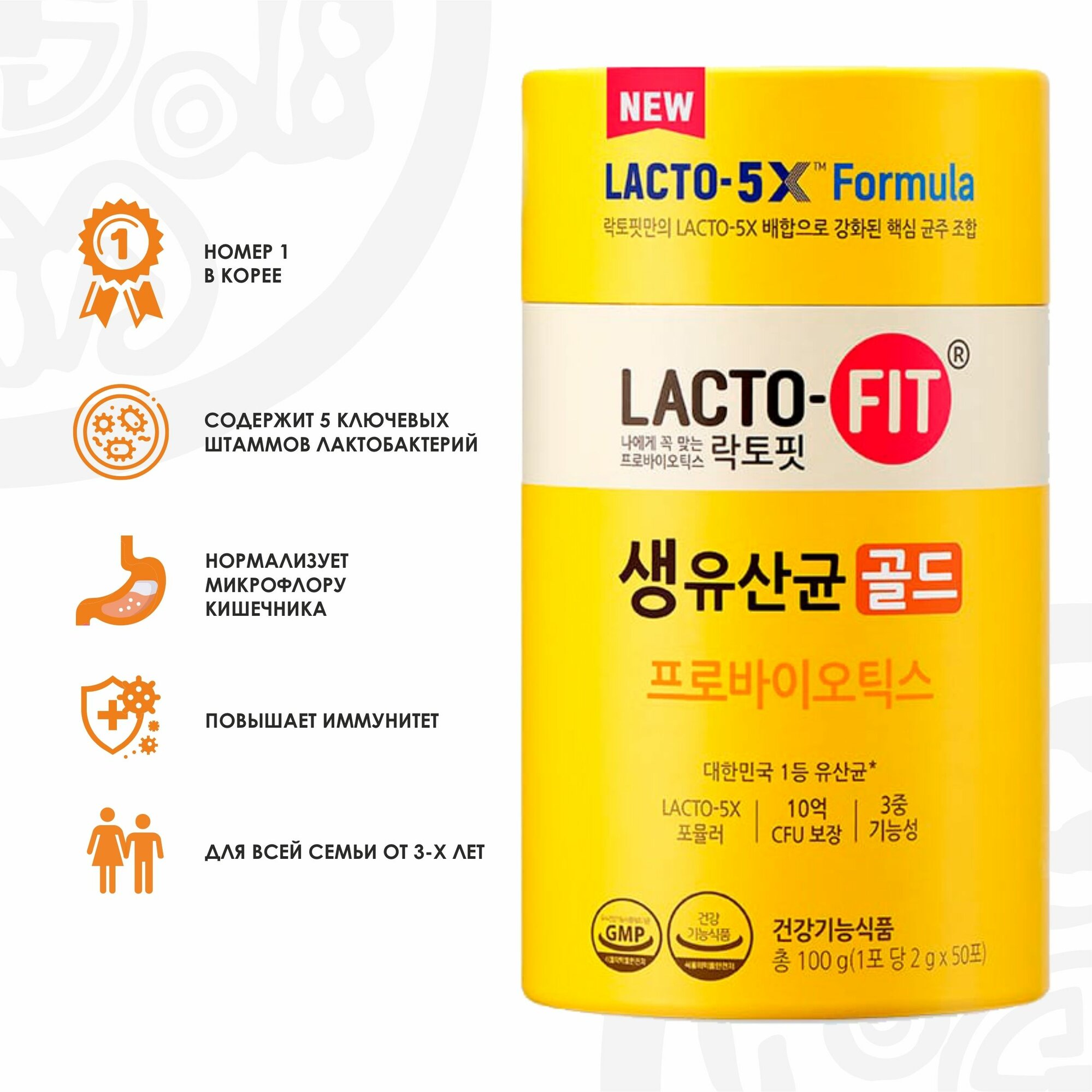 Пробиотики для взрослых и детей Lacto Fit / Лакто-Фит Корея, лактобактерии и бифидобактерии для кишечника, №50 саше
