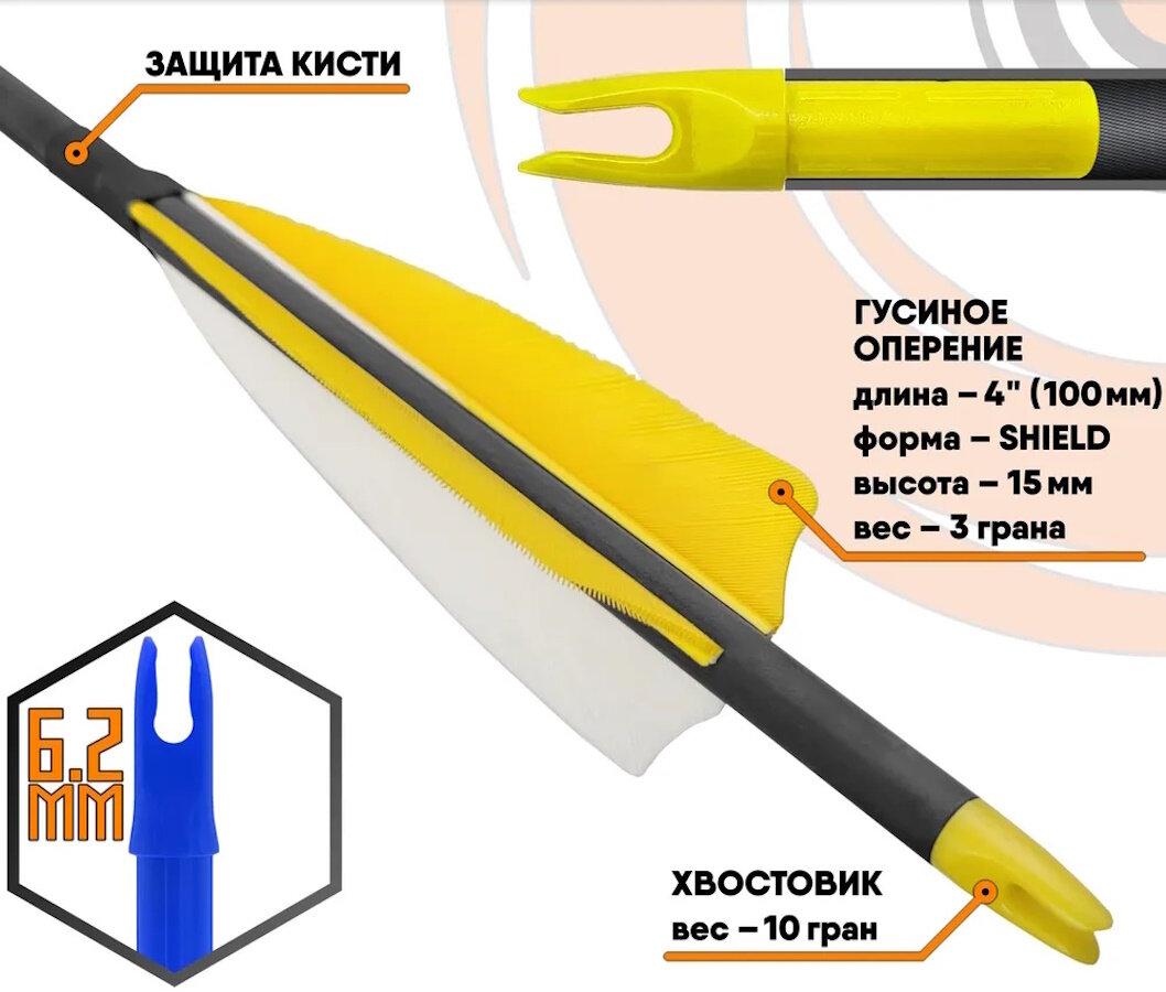 Стрела лучная карбоновая Anarchy 600 натуральное гусиное оперение 6 шт.