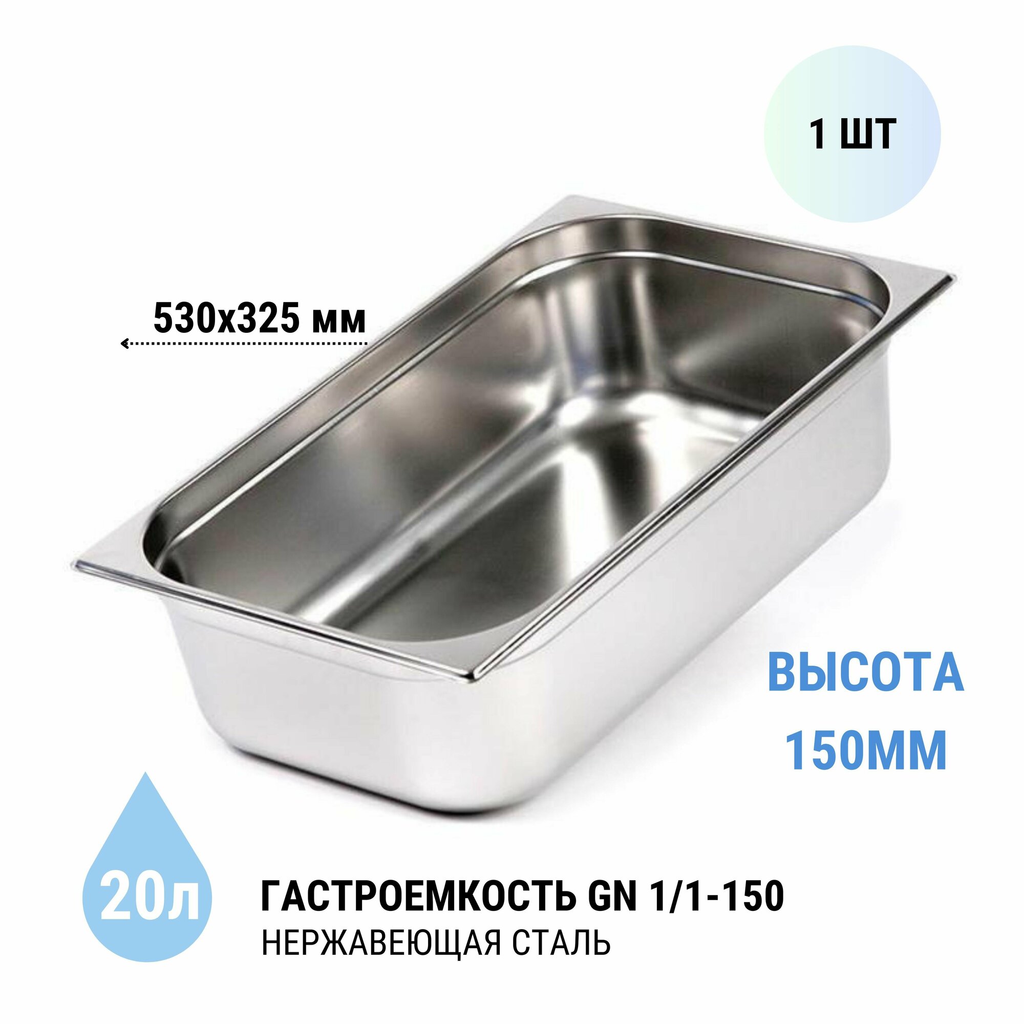 Гастроемкость GN 1/1-150 1 шт. из нерж. стали, 530х325х150 мм интересное: