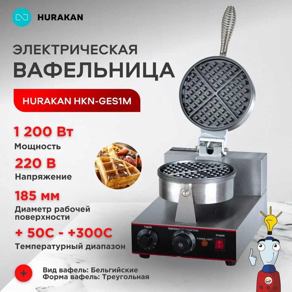 Вафельница электрическая HURAKAN "HKN-GES1M", чугун, антипригарная, серебристо-черная интересное:
