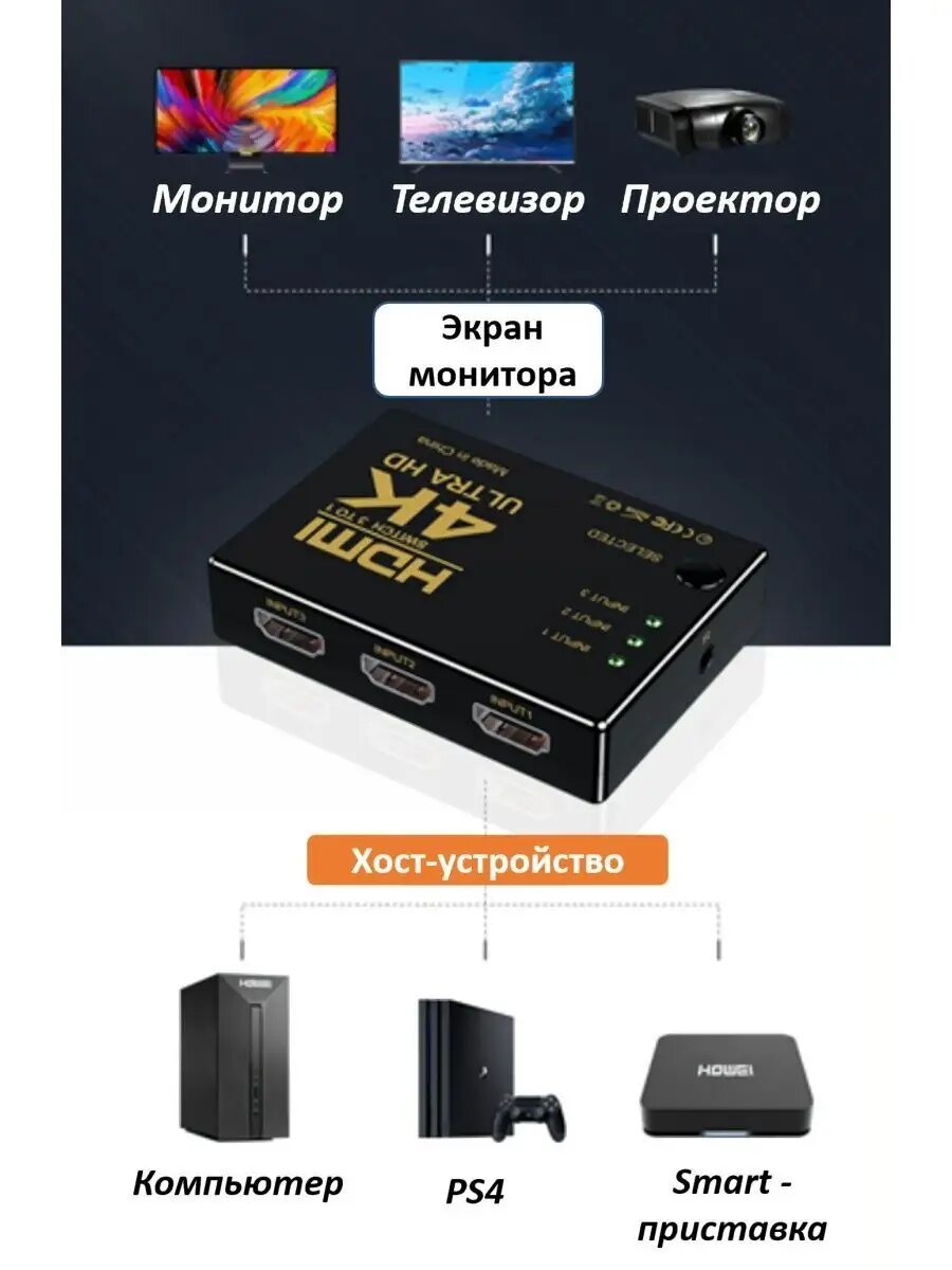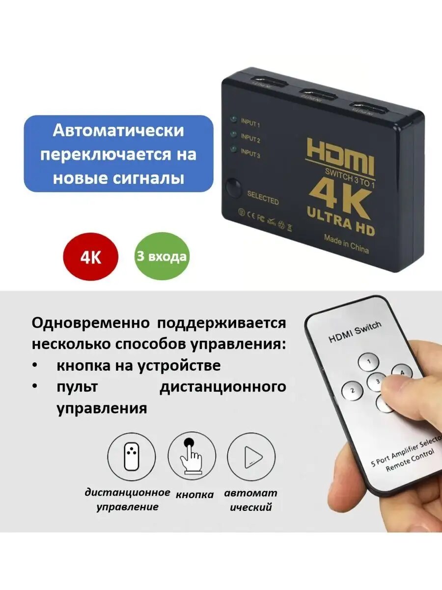 Разветвитель переключатель сигнала HDMI 3 входа 1 выход интересное: