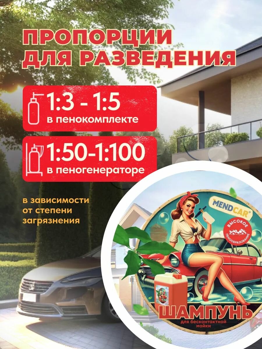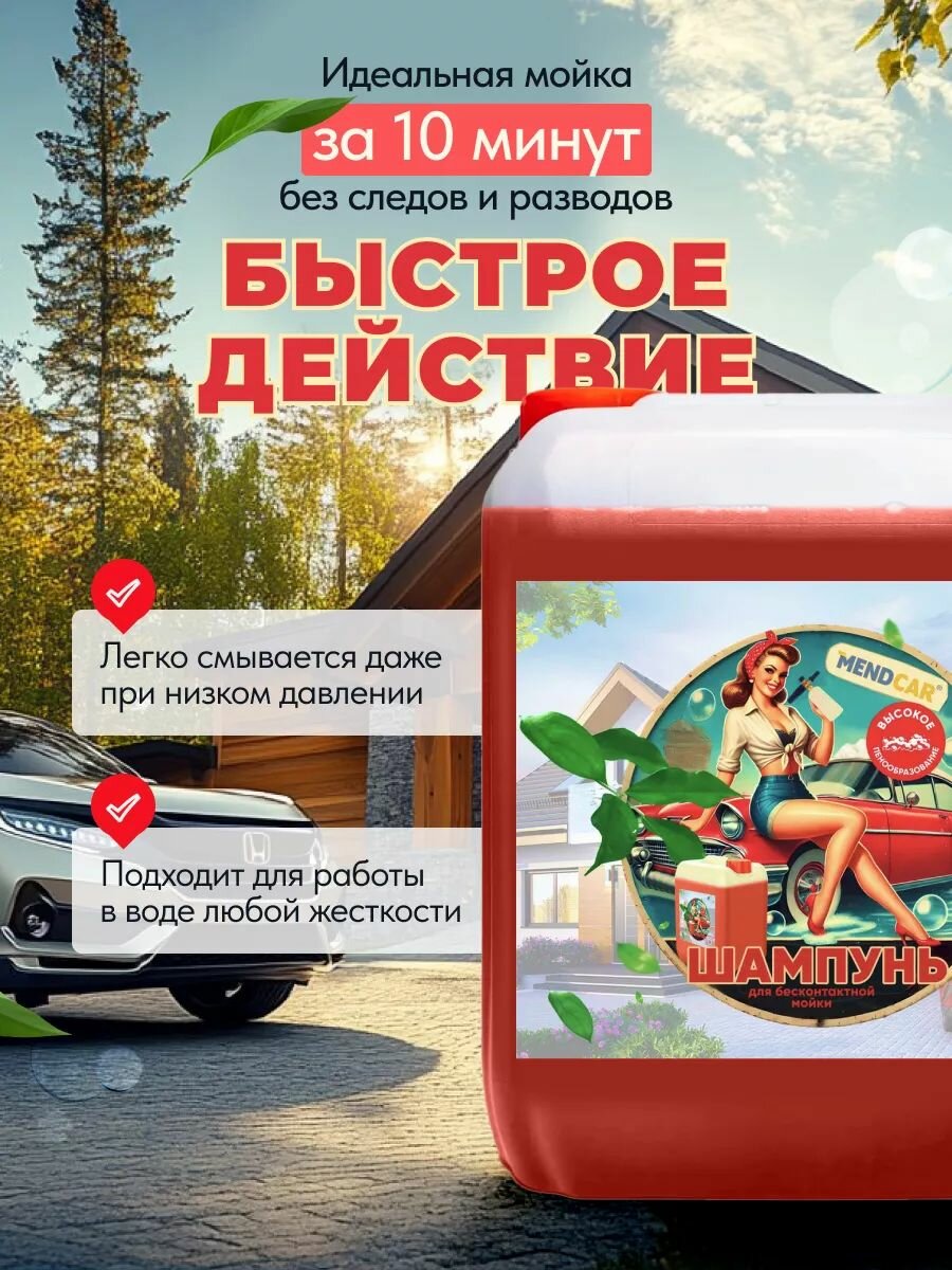 MENDCAR Автошампунь для бесконтактной мойки / активная пена Red 5л интересное: