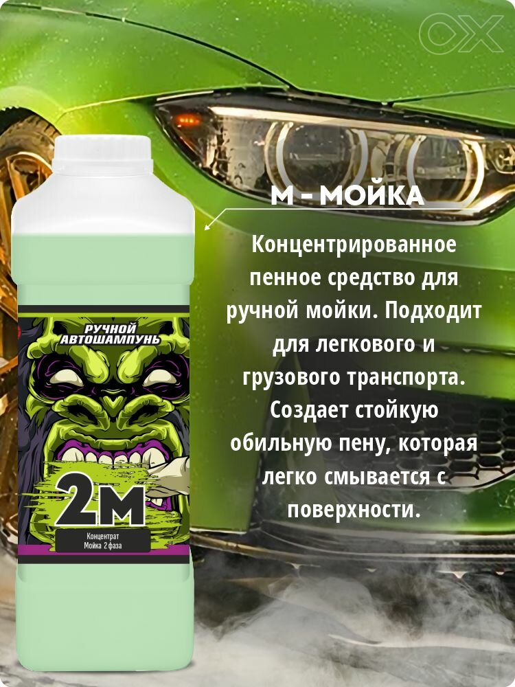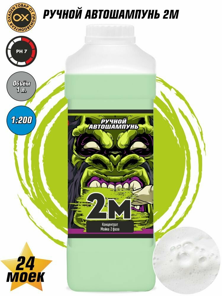 Безопасный ручной автошампунь с запахом зеленого яблока 2M для легкового и грузового транспорта- 1 л. интересное: