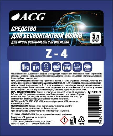 Автошампунь для бесконтактной мойки Z-4 ACG 5 л, шампунь для автомобиля / Активная пена для мойки интересное: