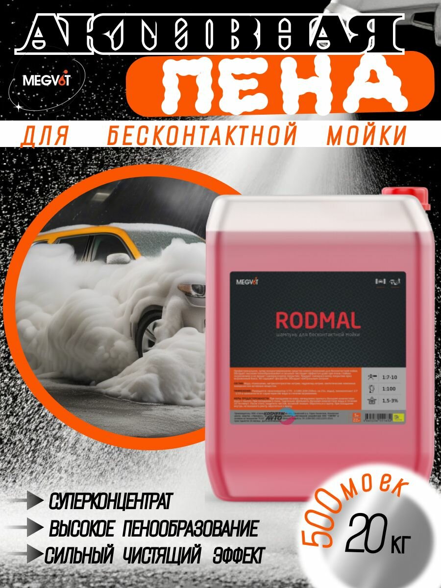 MEGVIT Автошампунь для бесконтактной мойки / активная пена Rodmal 20 кг интересное: