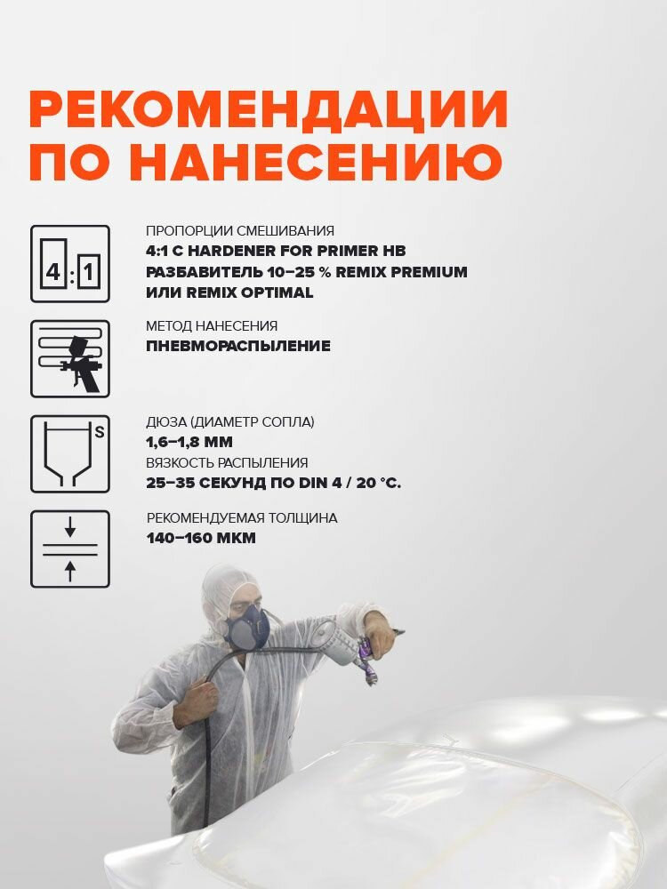 ГРУНТ автомобильный акриловый HB 2K 4:1 БЕЛЫЙ 0,8 л + 0,2 л отвердитель/ REMIX PRIMER HB / двухкомпонентная грунтовка интересное: