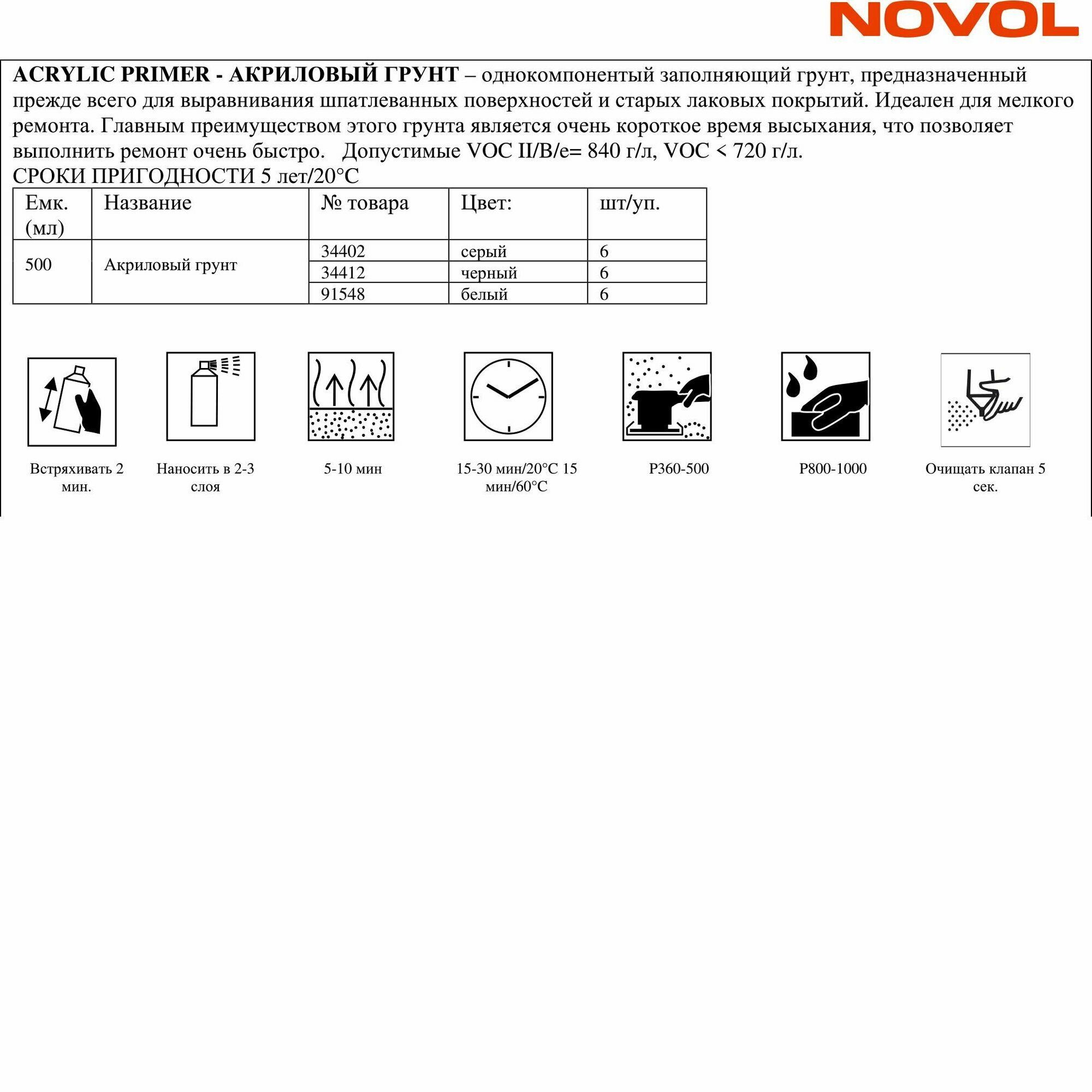 Грунт акриловый NOVOL ACRIL PRIMER серый аэрозоль 500мл интересное: