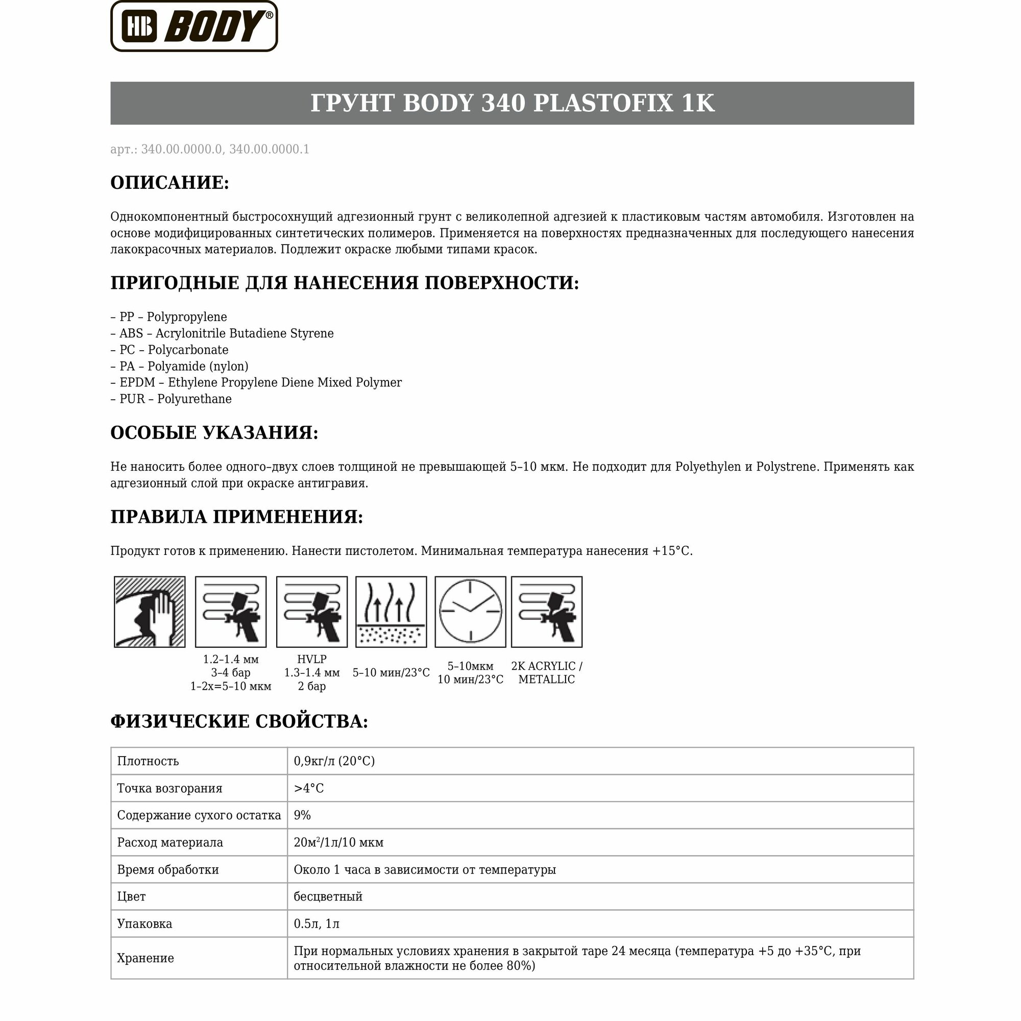 Грунт Body 340 Plastofix 1К по пластику прозрачный аэрозоль 400мл интересное: