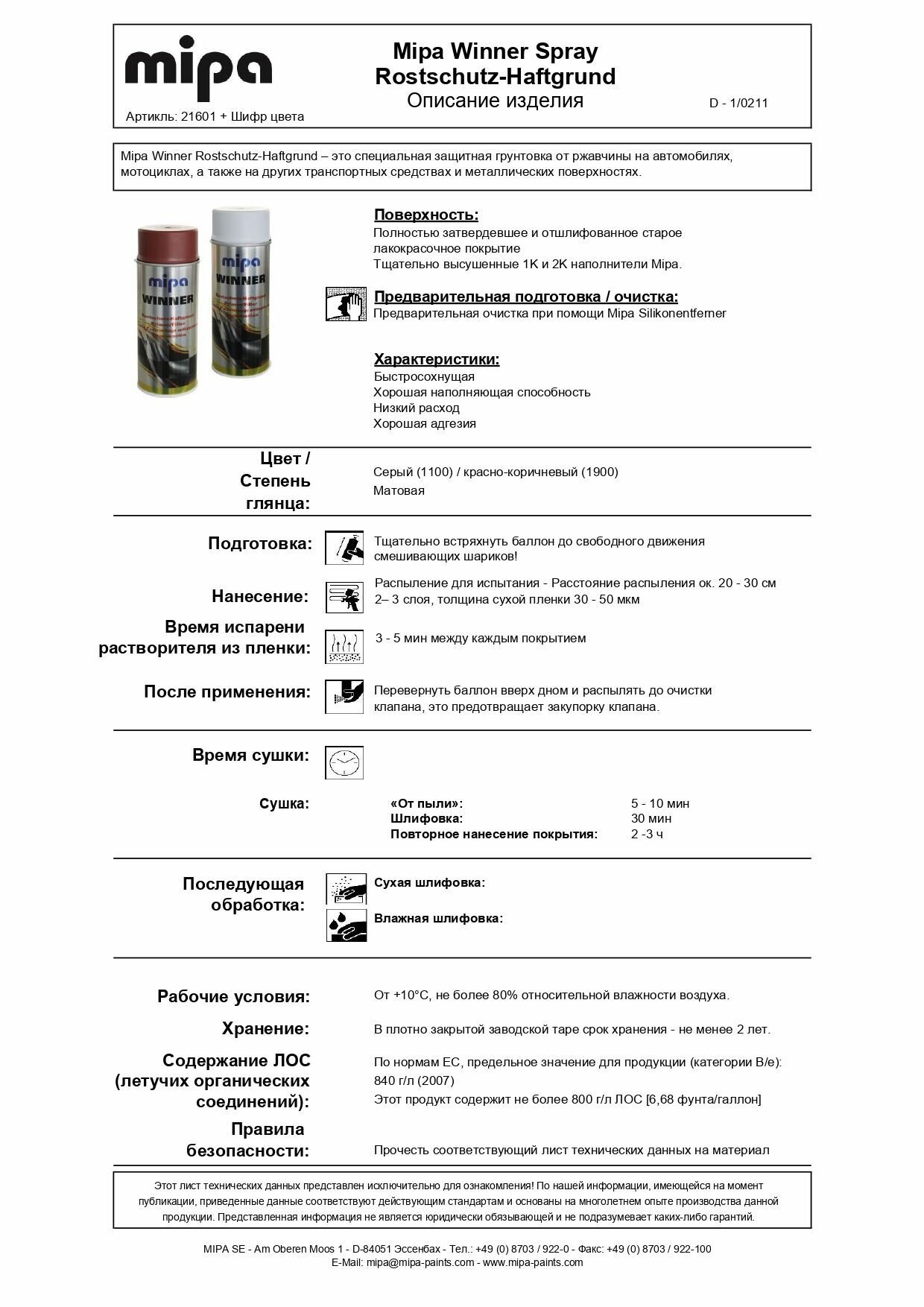 Ниже Вы можете прочитать отзывы на Mipa cпрей антикоррозийная грунтовка серая Winner Rust Protective 400мл, ознакомится с подробными характеристиками, посмотреть интересные обзоры и фотографии на Mipa cпрей антикоррозийная грунтовка серая Winner Rust Protective 400мл.