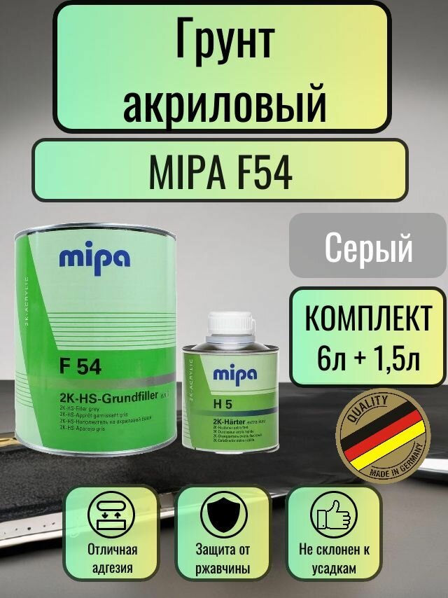 Купить Mipa 2K HS F54 Grundfiller(4+1) + отвердитель H 5 (1л + 0,25л) серый комплект 6ШТ
