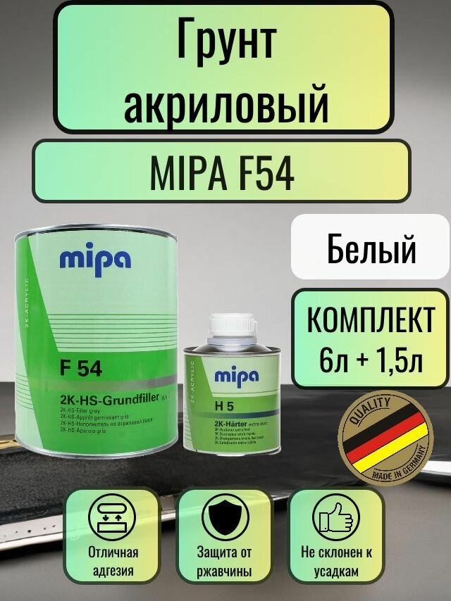 Купить Mipa 2K HS F54 Grundfiller(4+1) + отвердитель H 5 (1л + 0,25л) белый комплект 6ШТ