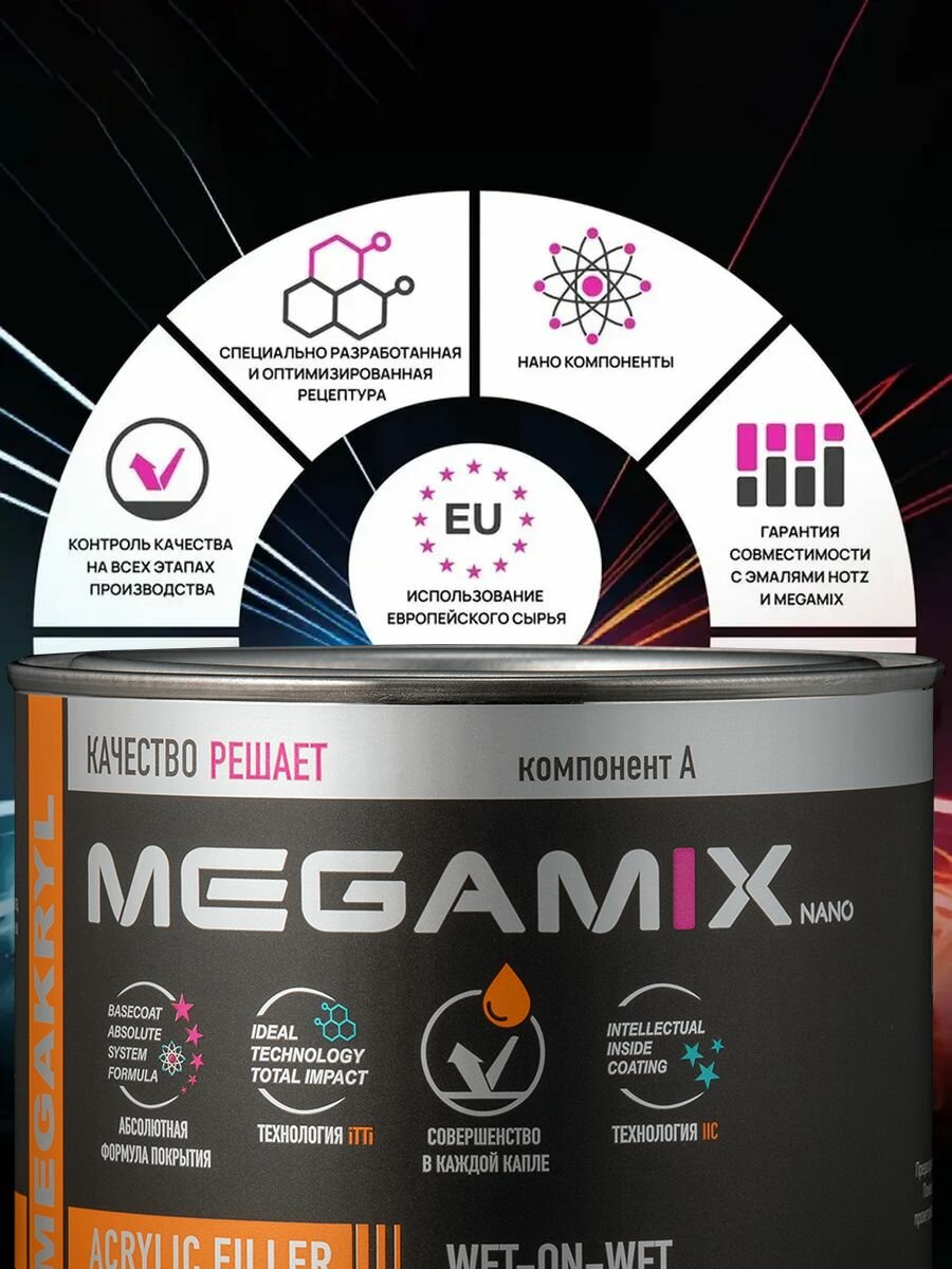 Грунт акриловый выравнивающй 2К 4:1, белый, Комплект (грунт: 800 г + отвердитель: 200 г), MEGAMIX интересное: