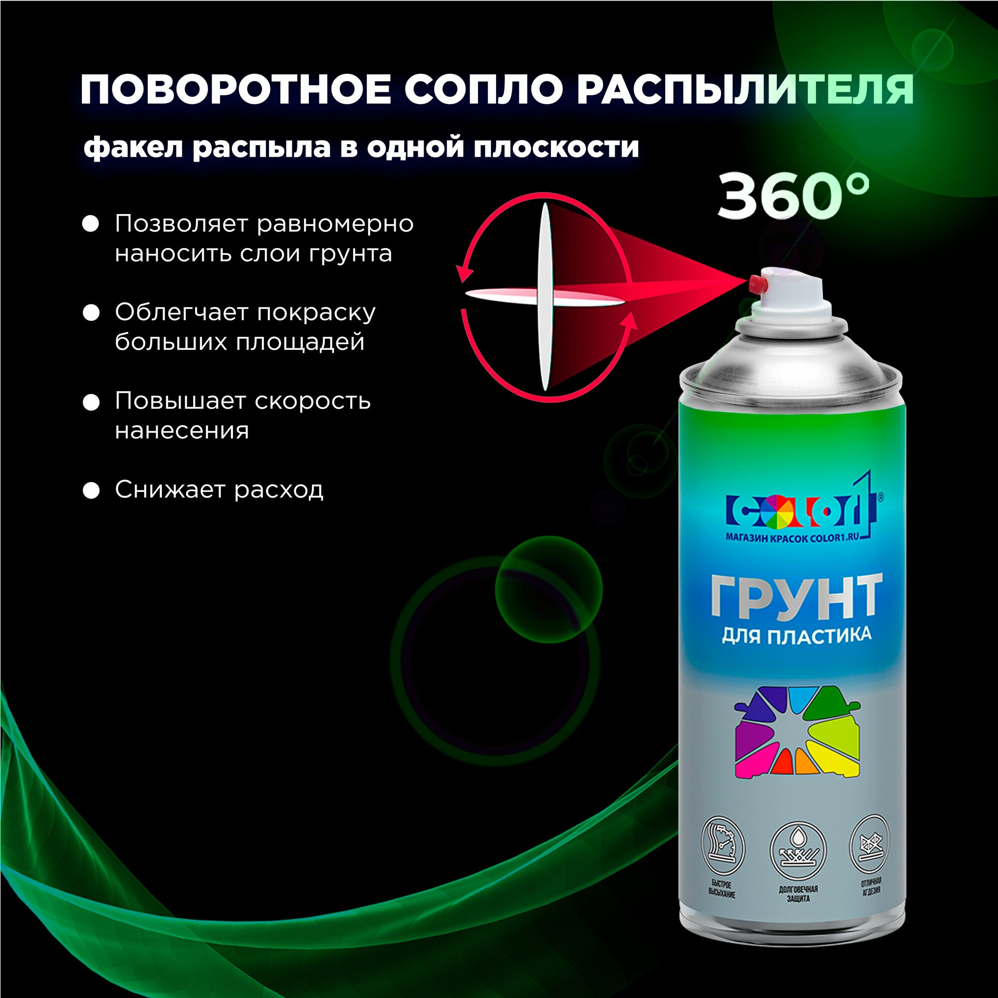 1К грунт для пластика COLOR1 "Аэрозольный 1К грунт для пластика в баллончике", быстросохнущий, адгезионный, прозрачный, 520 мл интересное:
