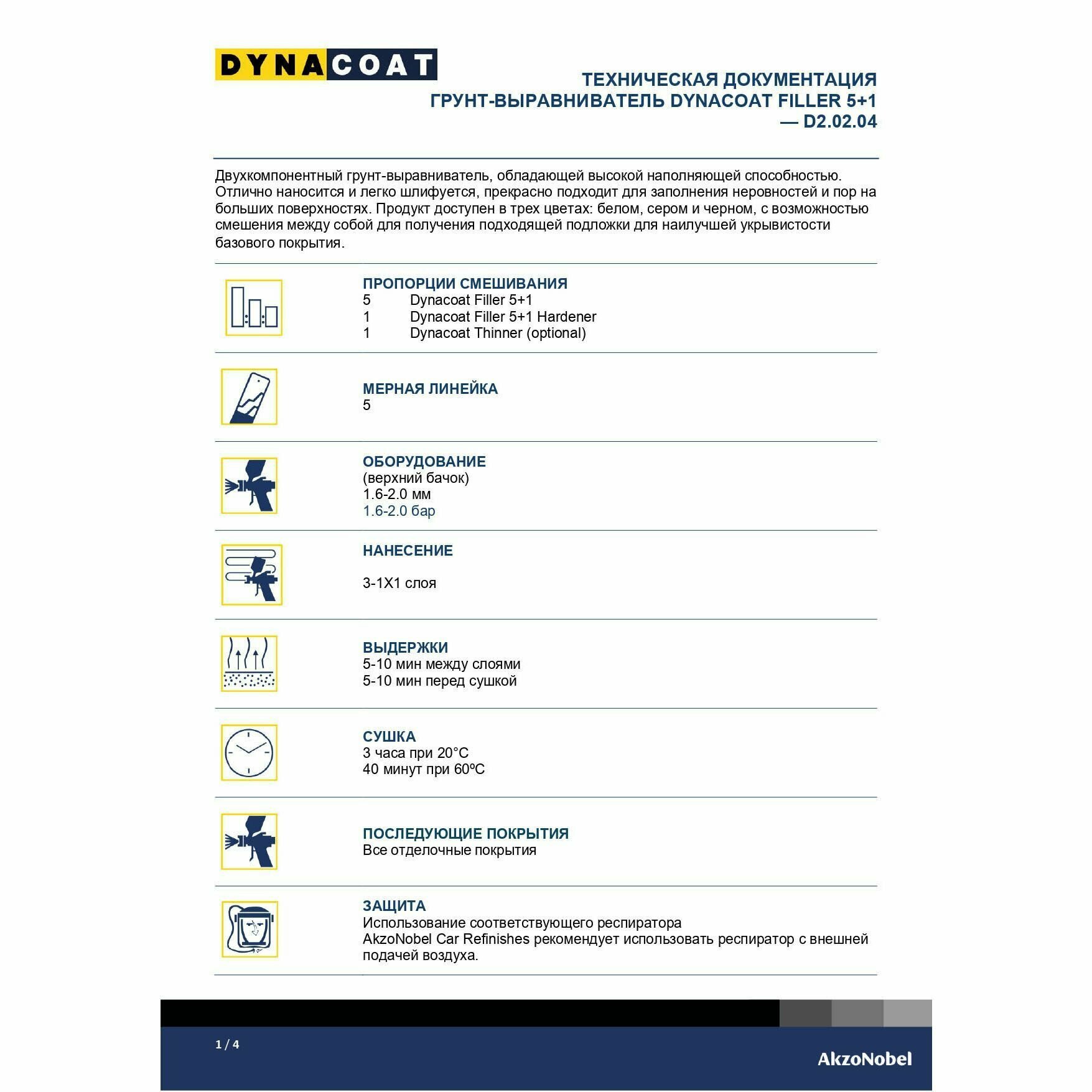 Грунт-выравниватель Dynacoat Filler 5+1 белый 0,84л + 0,16л отвердитель (комплект) интересное: