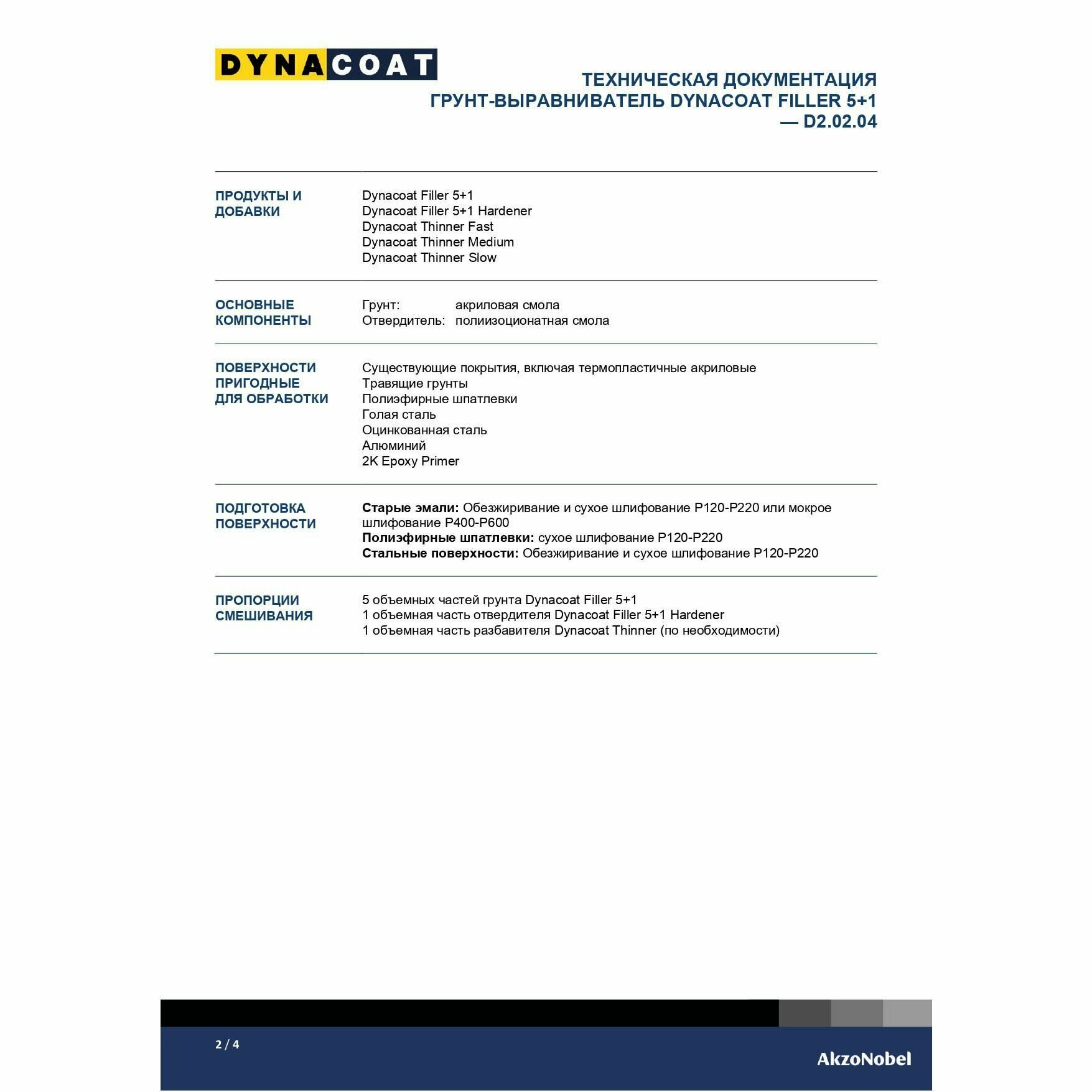 Грунт-выравниватель Dynacoat Filler 5+1 серый 0,84л + 0,16л отвердитель (комплект) интересное: