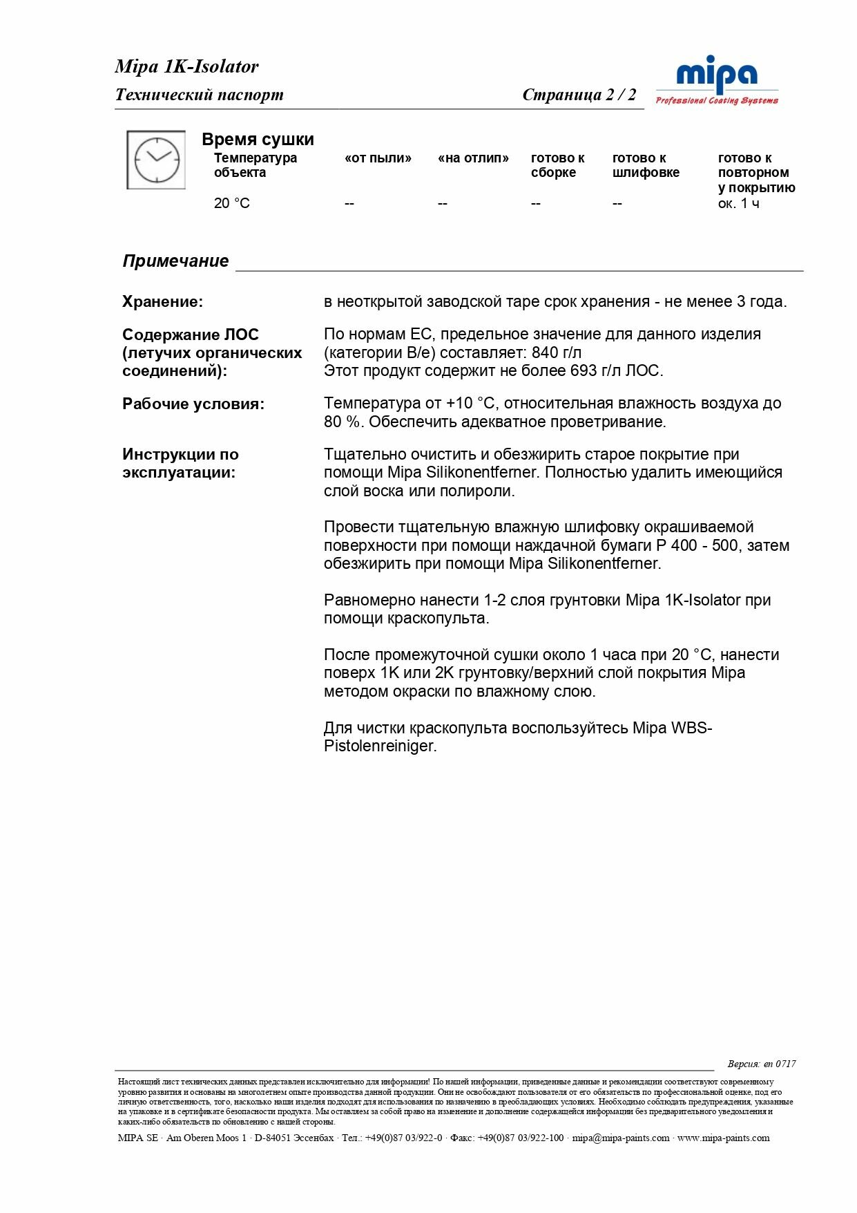| Комплектация | Mipa Эпоксидный грунт 1K-Epoxy-Primer серый 400 мл - 1 шт. |