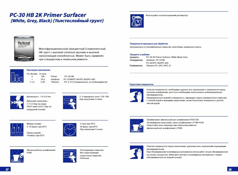 Perfecoat Грунт автомобильный выравниватель HS с хорошей наполняющей способностью PC-30 HB белый 3,75 л интересное: