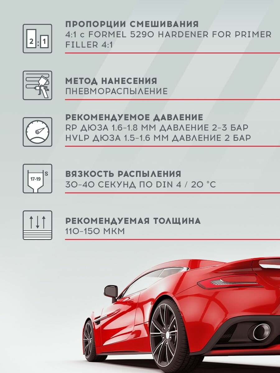 ГРУНТ автомобильный акриловый HS 2K 4:1 СЕРЫЙ 0,8 л + 0,2 л отвердитель / FORMEL 1290 / двухкомпонентная грунтовка интересное: