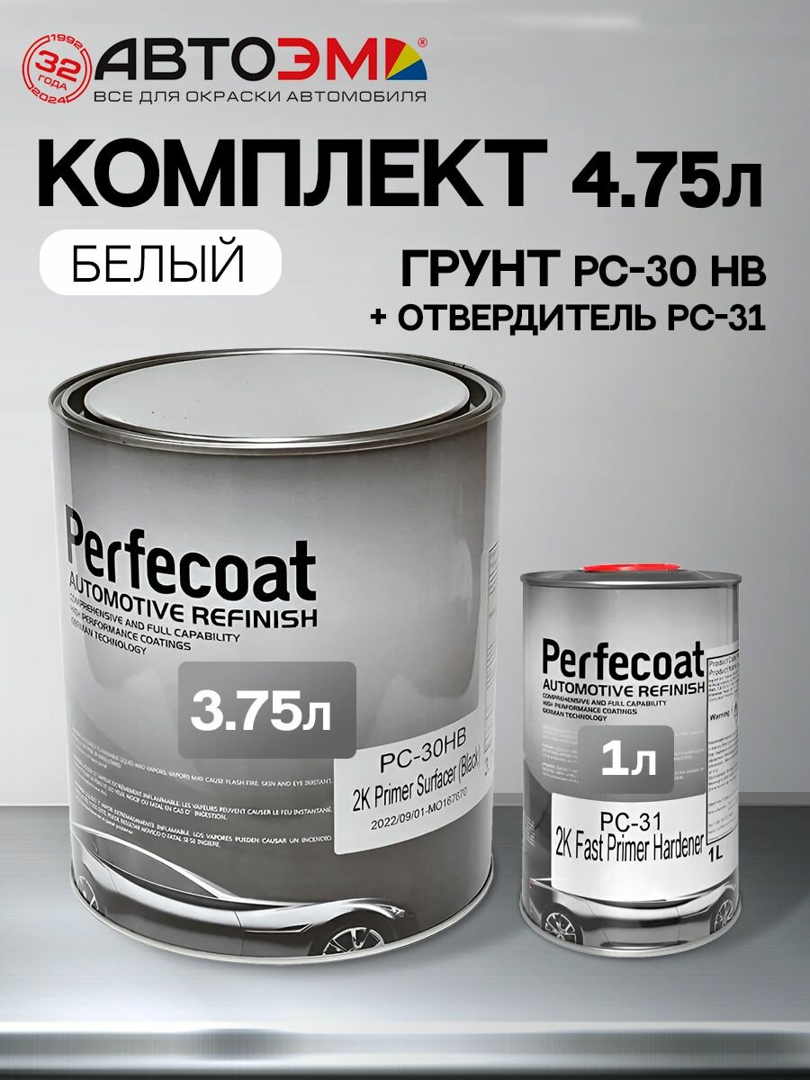Perfecoat Грунт автомобильный выравниватель HS с хорошей наполняющей способностью PC-30 HB 3,75 л +отвердитель РС-31 1 л (белый комплект) интересное: