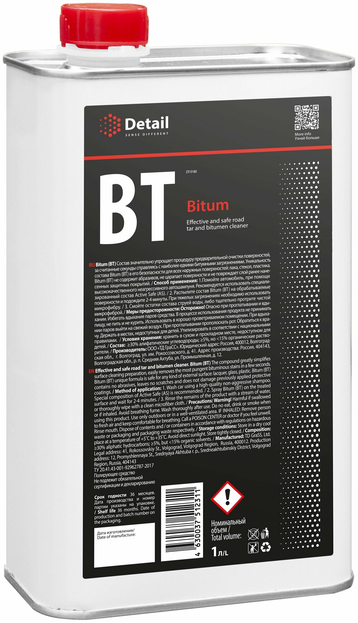 DETAIL Очиститель битумных пятен, антибитум ВТ Bitum, 1000 мл, банка, Grass интересное: