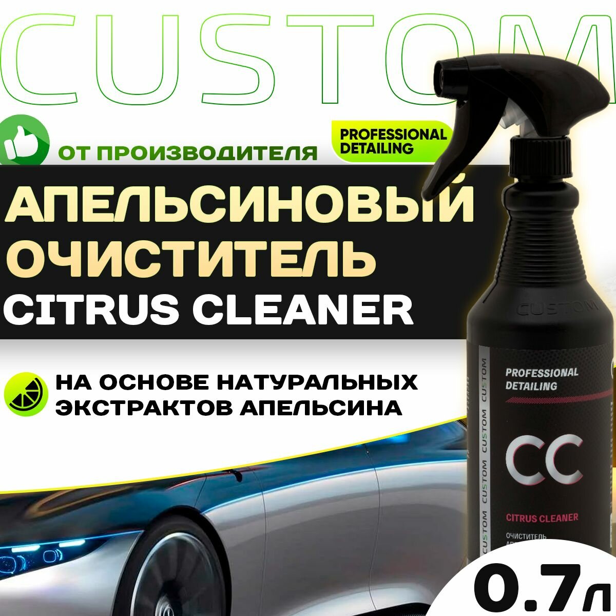 Апельсиновый очиститель от клея, скотча, жвачки CUSTOM Сitrus Cleaner 700 мл интересное: