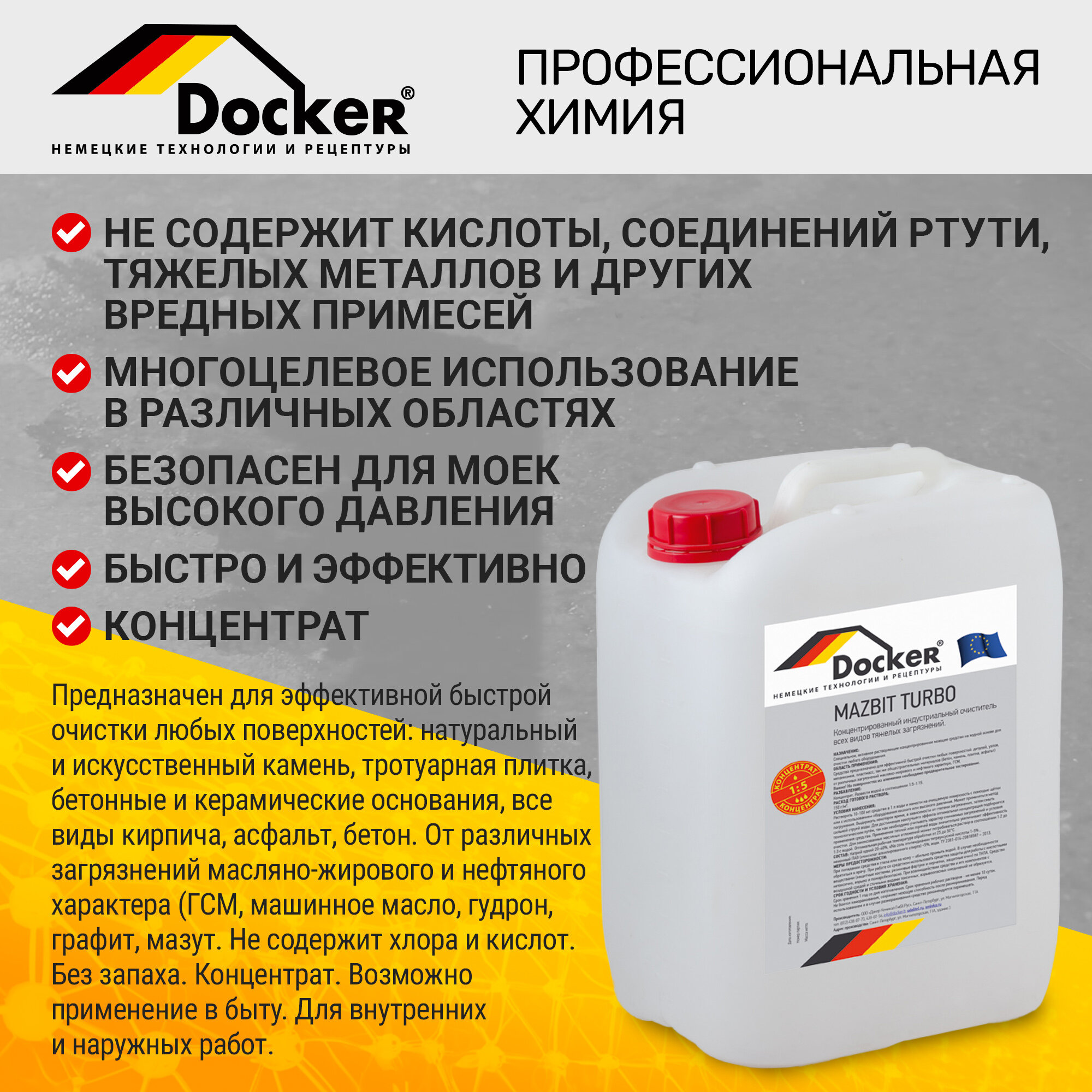 DOCKER MAZBIT TURBO Концентрат 1:5 без кислоты. Cредство для очистки ГСМ, мазута, масла, нефти (5 кг.)