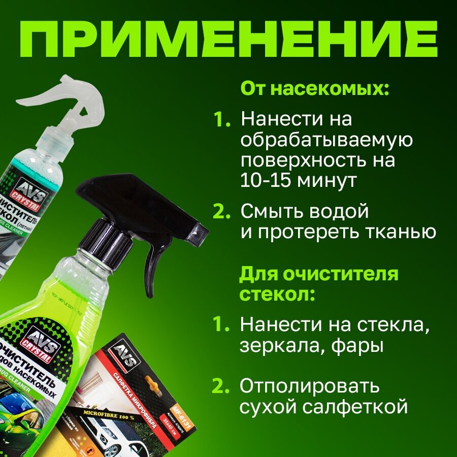 Набор автохимии Очиститель следов насекомых 500 мл, Автостеклоочиститель 250 мл, Салфетка микрофибра интересное: