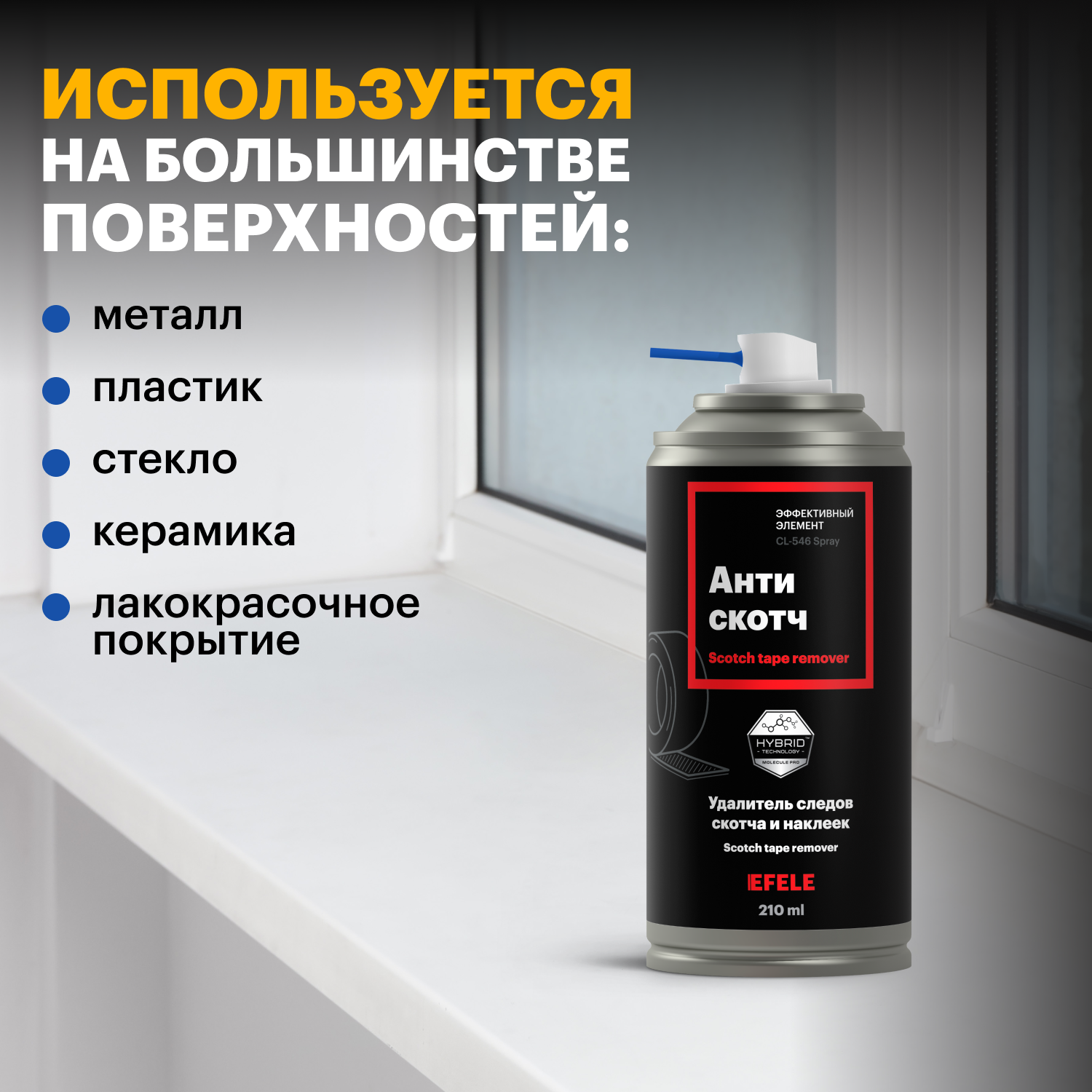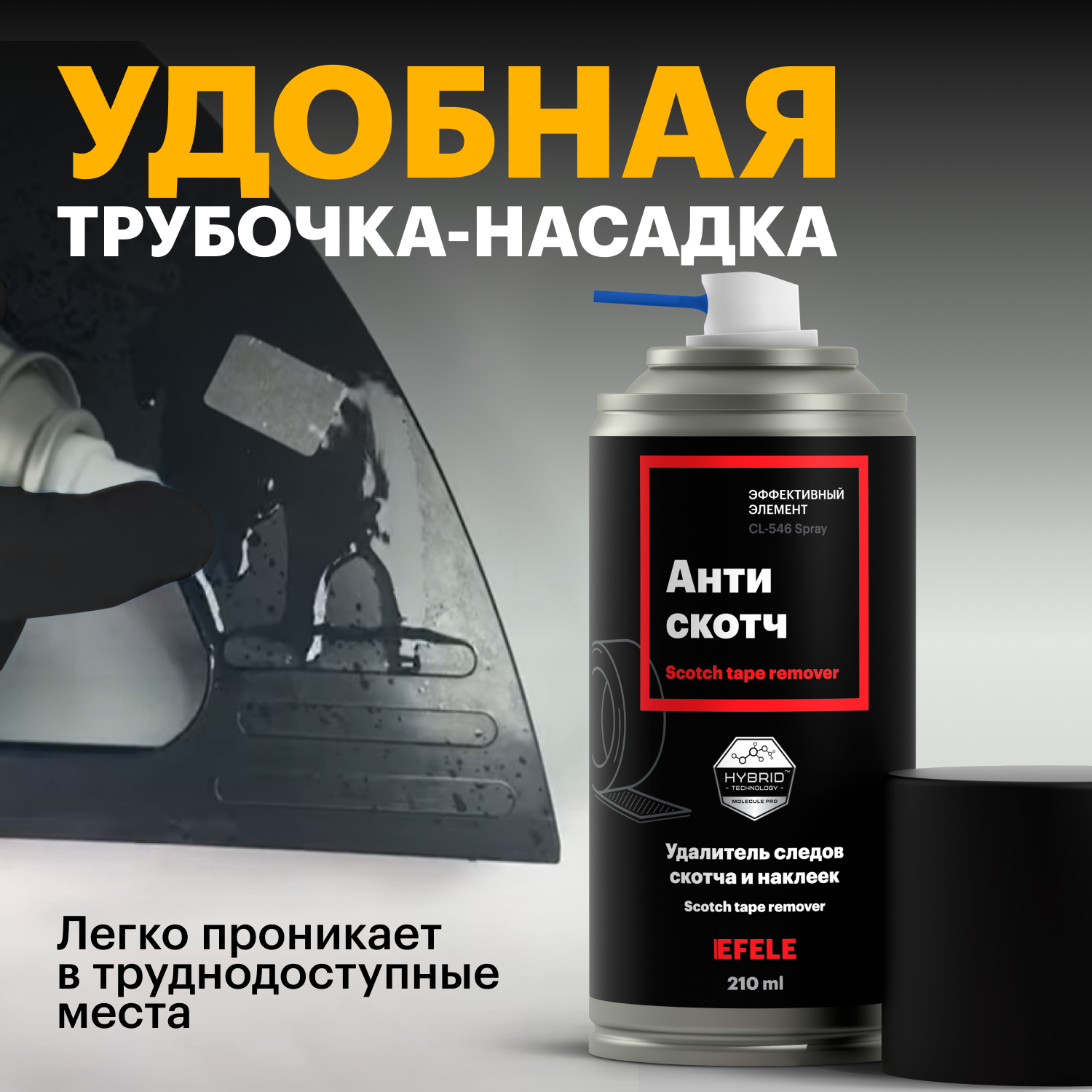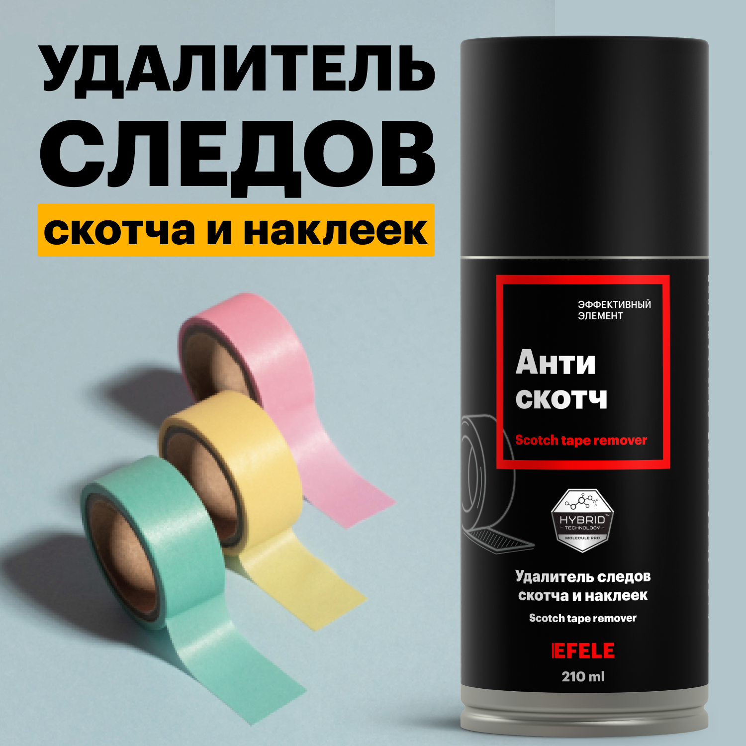 Купить Очиститель следов клея, скотча и удалитель наклеек Антискотч EFELE Spray / аэрозоль (210 мл)