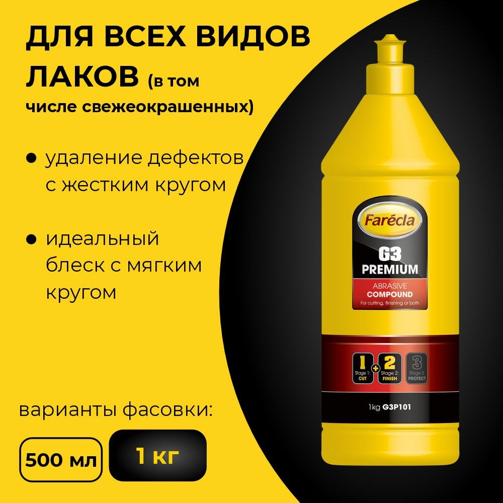 Полировальная паста для авто одношаговая Farecla G3 Premium 1кг / полироль абразивная интересное: