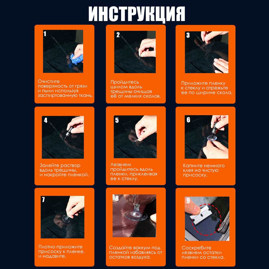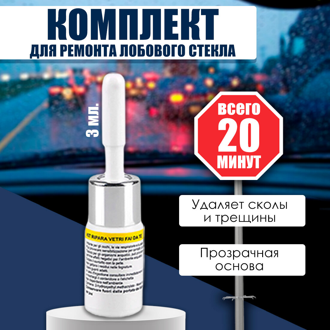 Набор автомобилиста, ремонтный комплект для устранения трещин и сколов на лобовом стекле