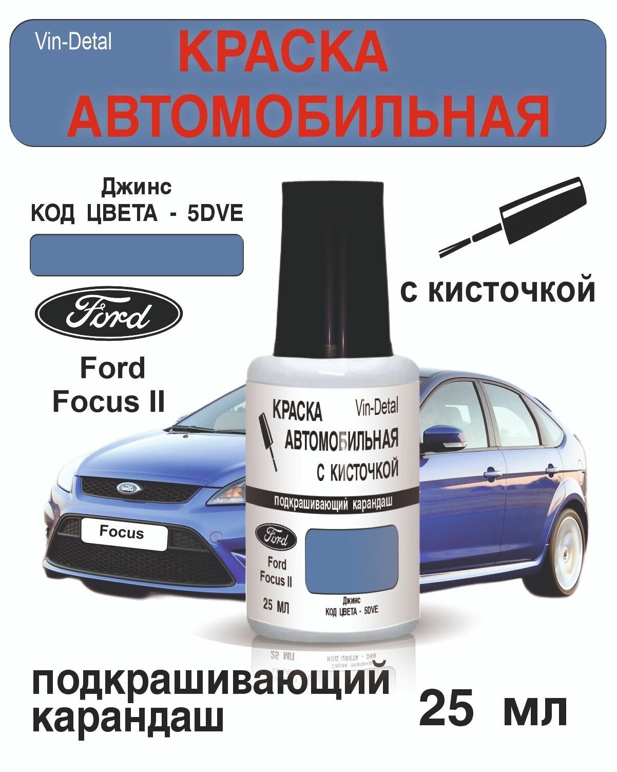 Купить Краска во флакончике с кисточкой Ford Focus 2 Код Краски "5DVE" Jeans . краска+лак 2 предмета