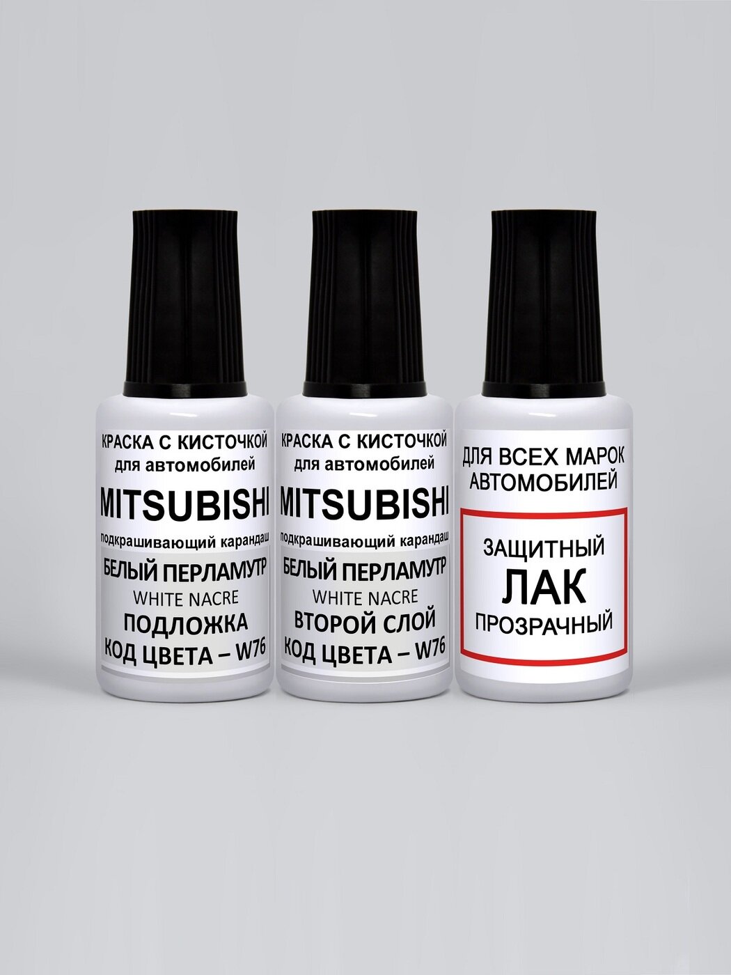 Краска для сколов во флаконе с кисточкой Mitsubishi W76 белый перламутр (White Nacre), краска+лак 3 предмета интересное: